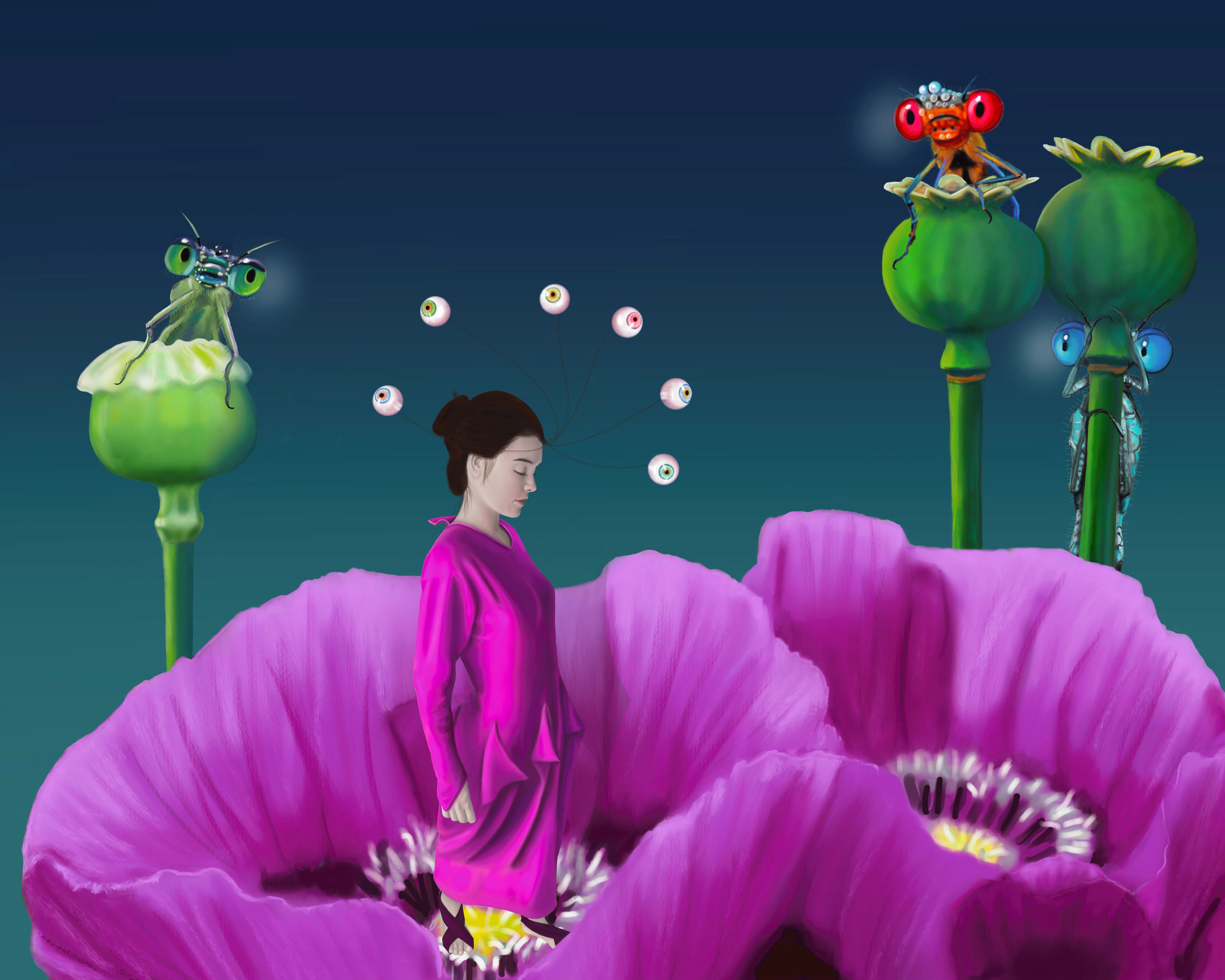 Digitaal Ogen Fantasie Eyes Papaver Surreal Fantasy Insecten Digitalart Insects Poppy-flowers