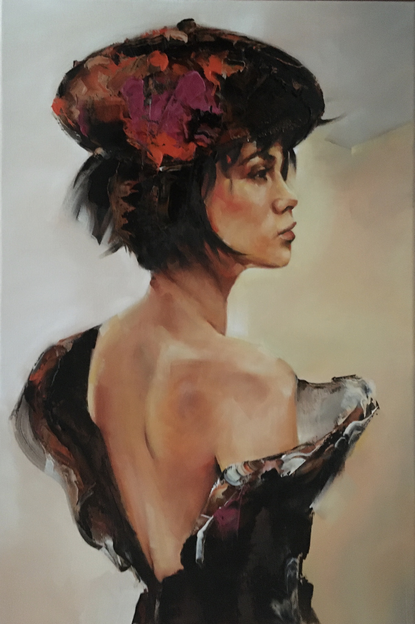 Vrouwenportret met baret, olieverf op linnen
