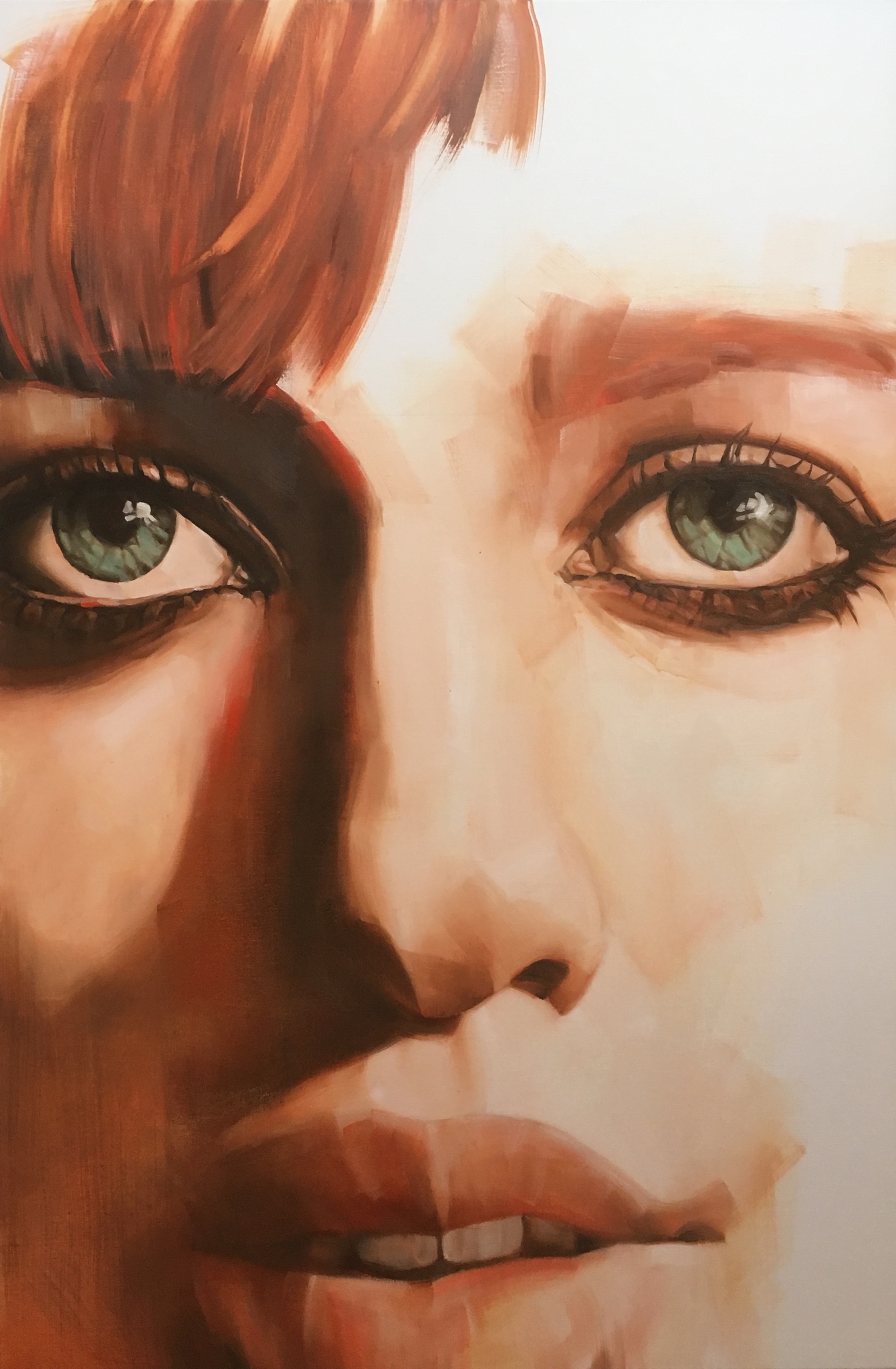 Uitvergroot vrouwengezicht, olieverf op linnen