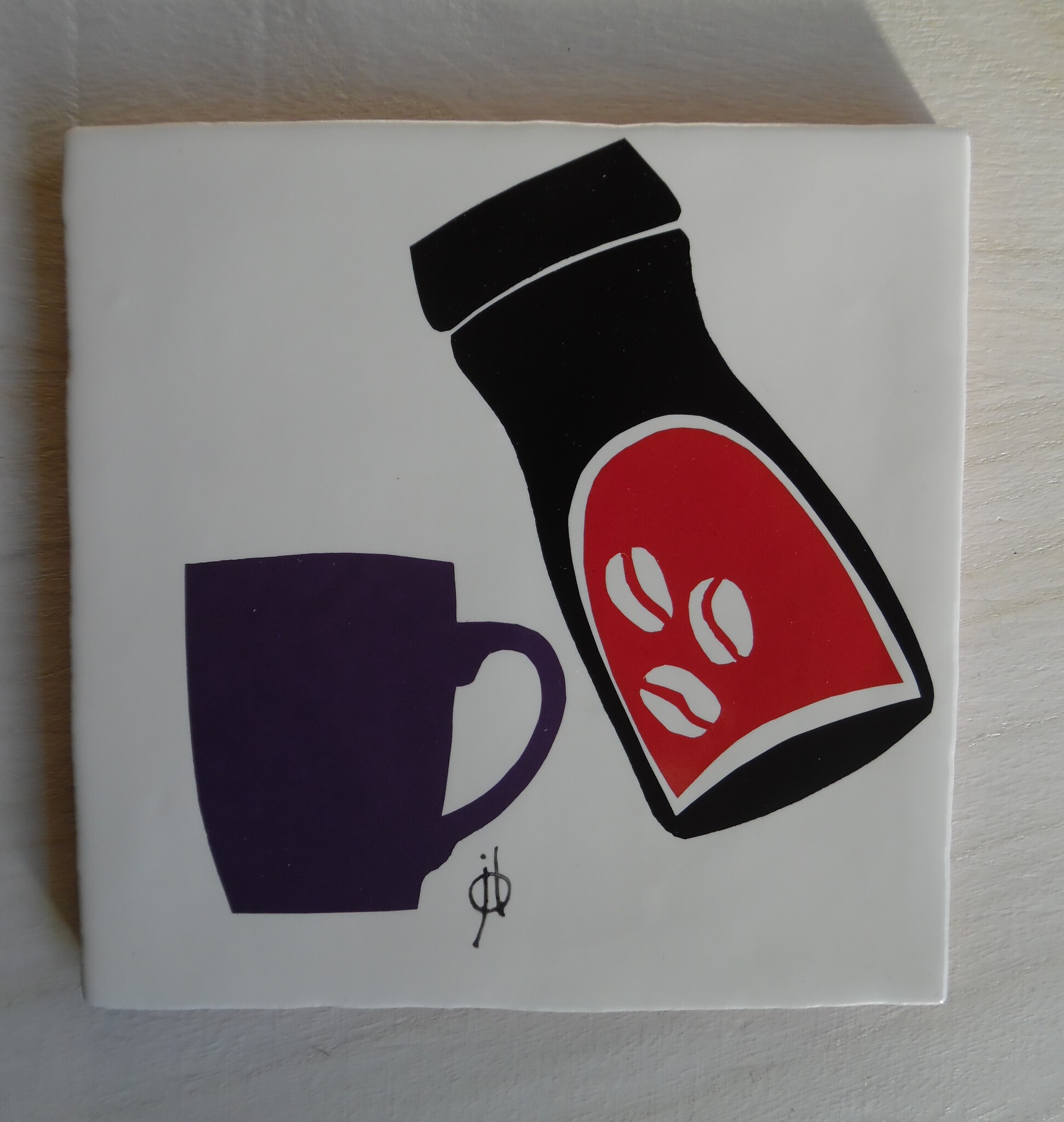 " Een kleur wordt gevoel, een vorm een gedachte. " Waarom tegeltjes? Deze zijn duurzaam, decoratief en vertrouwd. De uitdaging is ambachtelijke technieken in te zetten voor een beeldtaal. Een beeld dat een feest der herkenning wordt! " hooked" tegelgram mei 2019 oude aardewerk tegel met zeefdruk.