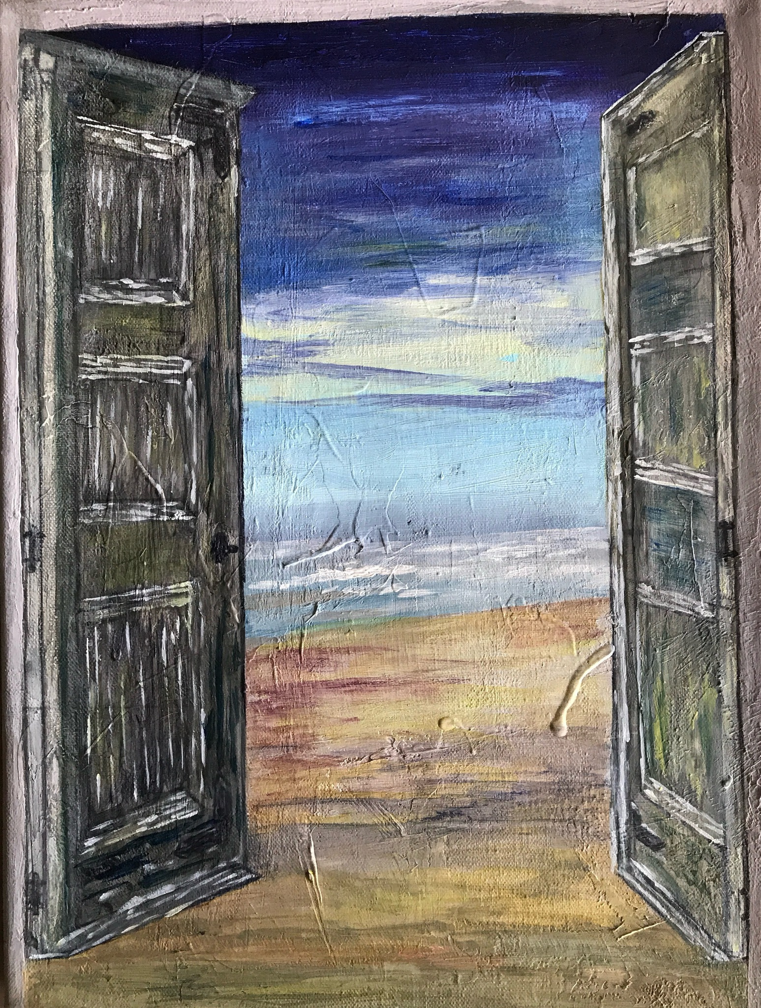Zee Strand Figuratief Acryl Magisch Surrealistisch Bomen Acrylverf Surrealisme Surreëel Strandgezicht Deuren Doorkijkje