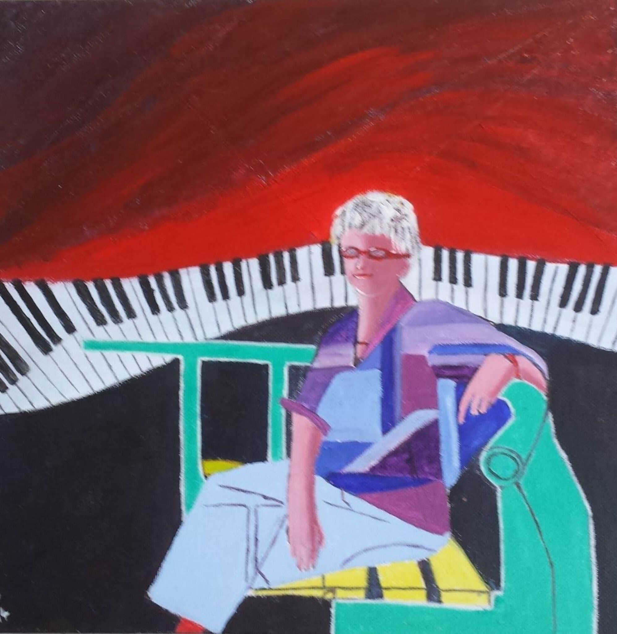 Abstract Figuratief Acryl Vrouw Realistisch Olieverf Acrylverf Figuren Romantisch Piano Gestel