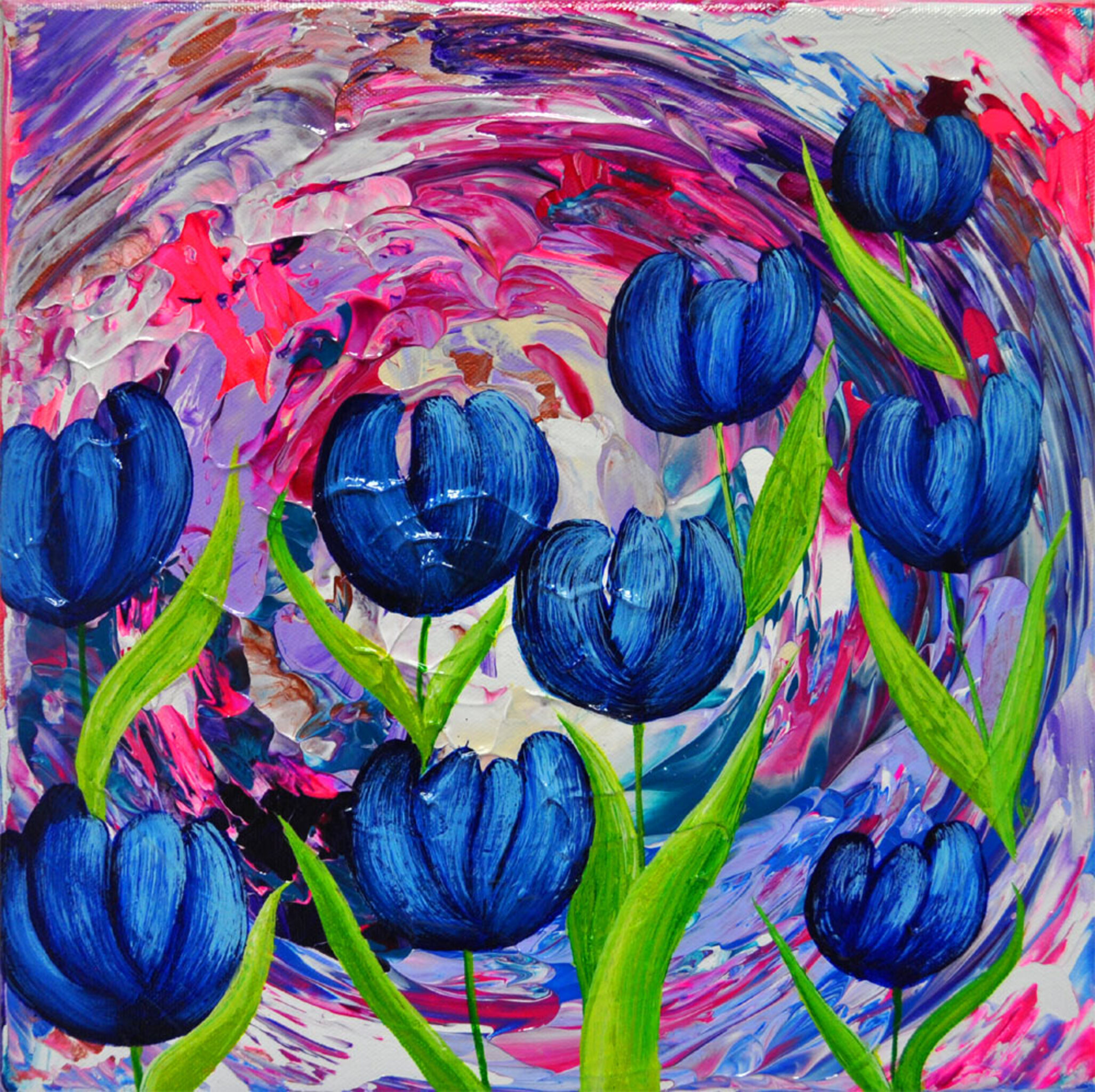 Schilderij Figuratief Blauw Expressief Tulp Tulpen Bloemen Art Kleurrijk Kunst Natuur Painting Bloem Unique Blauwe Vrolijk Flower Tulip Kleur Origineel Kleurrijke Vrolijke Colorful Bloemenschilderij Happy