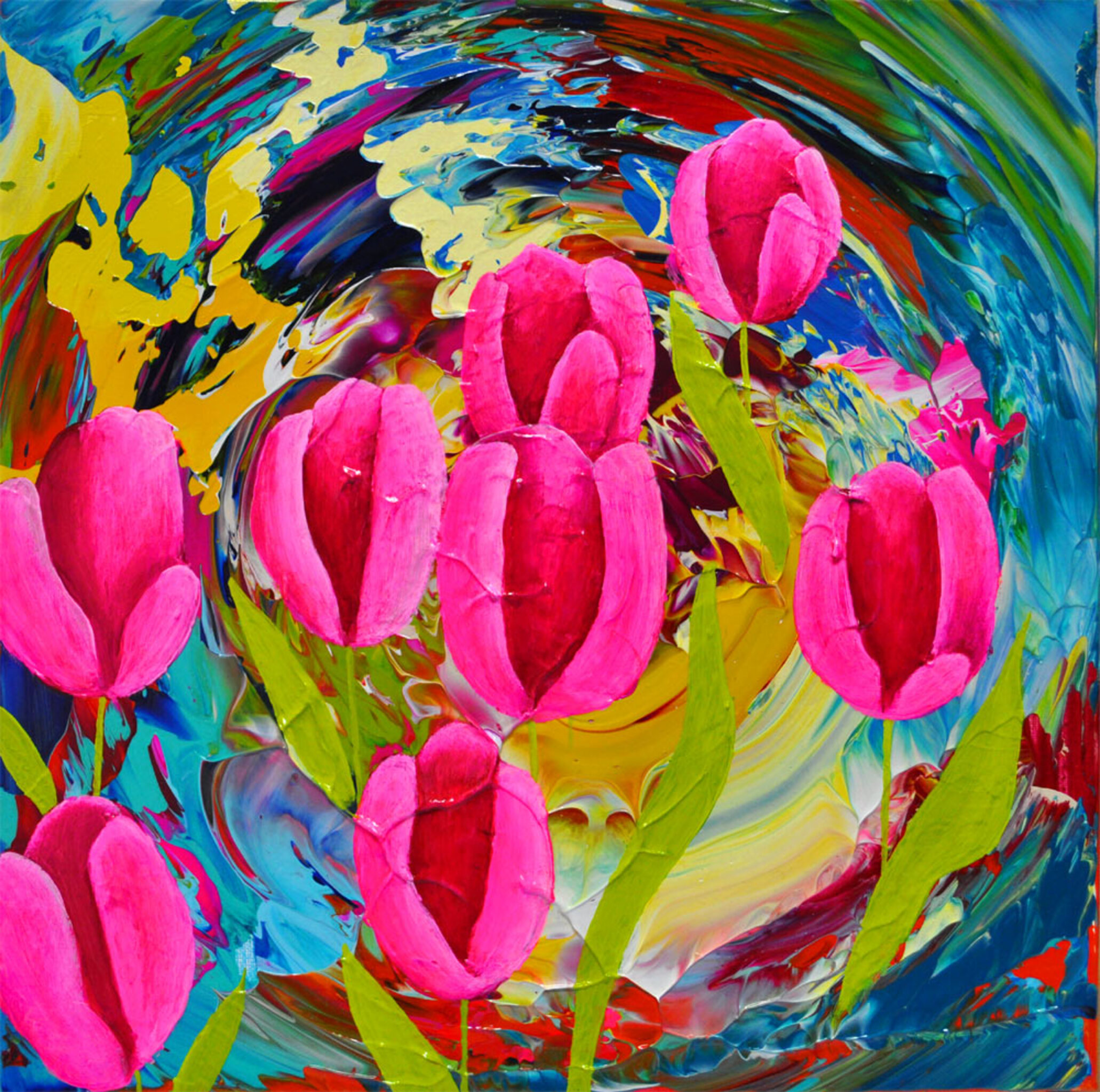 Schilderij Figuratief Blauw Expressief Tulp Tulpen Bloemen Art Kleurrijk Kunst Natuur Painting Bloem Unique Blauwe Vrolijk Flower Tulip Kleur Origineel Kleurrijke Vrolijke Colorful Bloemenschilderij Happy