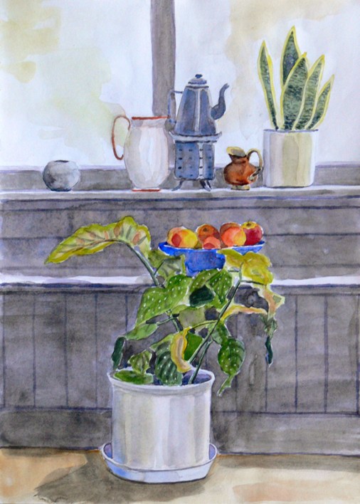 Aquarel Stilleven Planten Raam Woonkamer