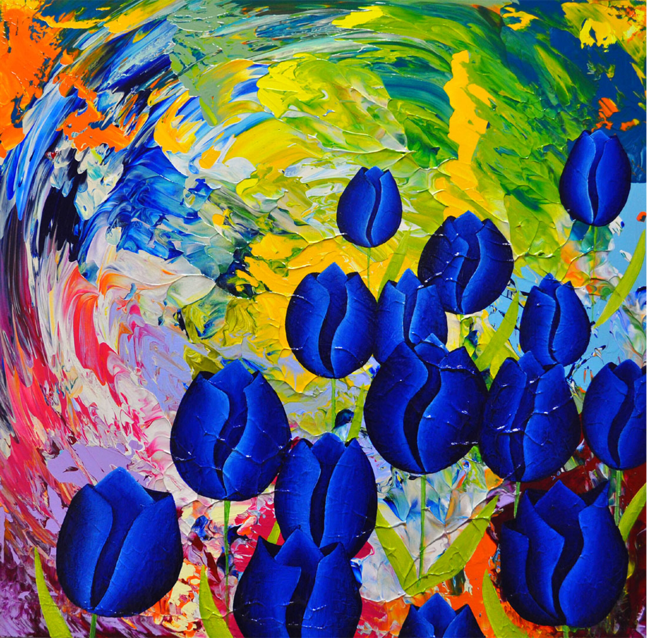 Schilderij Figuratief Blauw Expressief Tulp Tulpen Bloemen Art Kleurrijk Kunst Natuur Painting Bloem Unique Blauwe Vrolijk Flower Tulip Kleur Origineel Kleurrijke Vrolijke Colorful Bloemenschilderij Happy