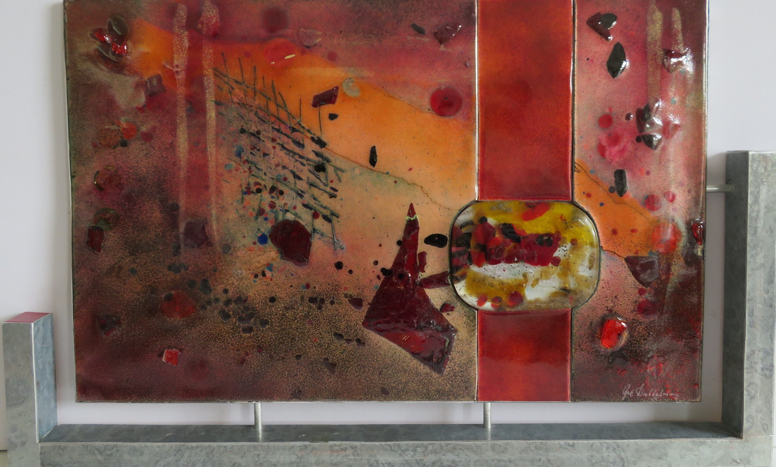 Ik ben emailleur en maak wandpanelen en reliëfs. Vaak verwerk ik er ook gefused- of brokken glas in. De zijkanten en holtes van de reliëfs werk ik af met verouderd zink.