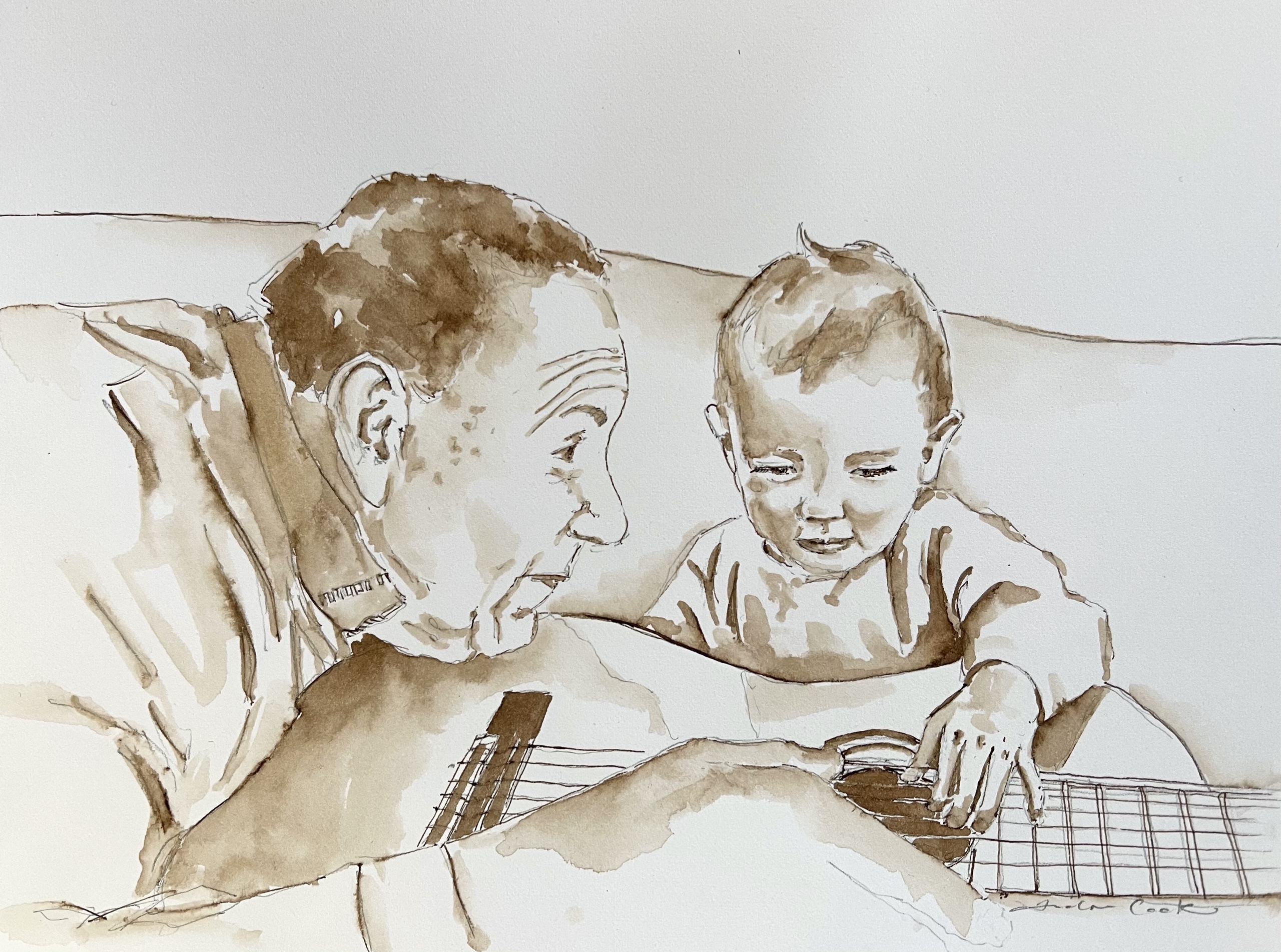Opa Grandpa Kind Child Baby Bruin Brown Ink Inkt