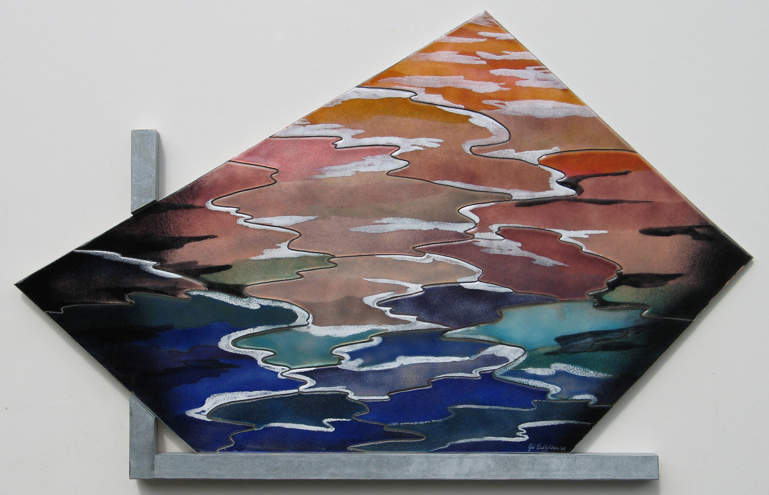 Ik ben emailleur en maak wandpanelen en reliëfs. Vaak verwerk ik er ook gefused- of brokken glas in. De zijkanten en holtes van de reliëfs werk ik af met verouderd zink.