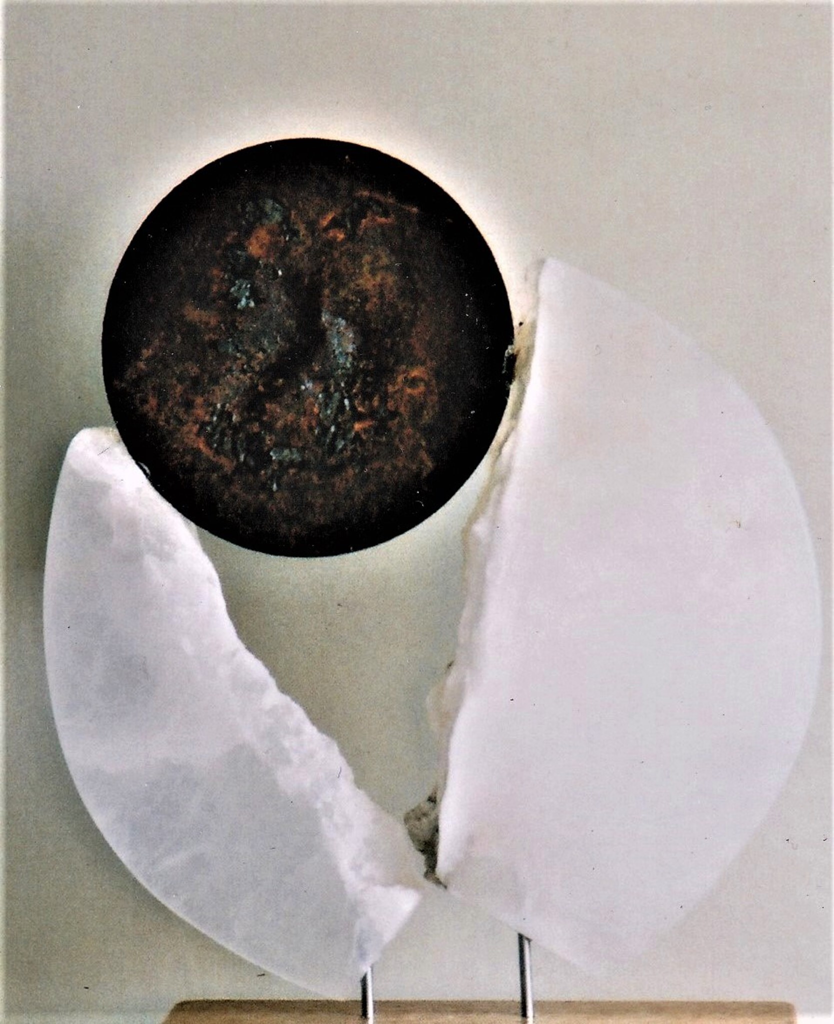 Kiem-Kracht met bewerkte metaleen cirkel hoog witte albast met metaal