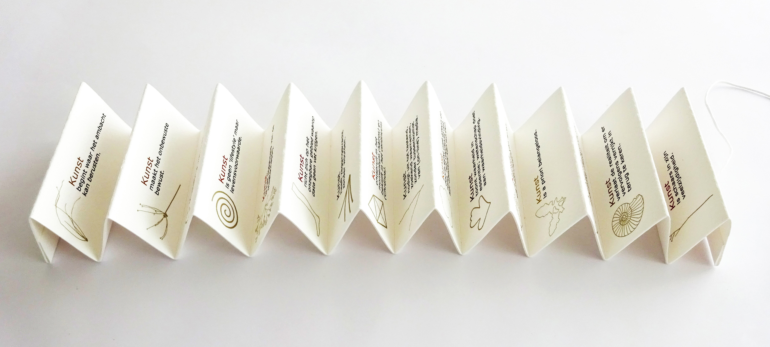 Leporello in opdracht met uitspraken van de galeriehouders van galerie de Burgerij. Ontwerp en uitvoering is van mijn hand.