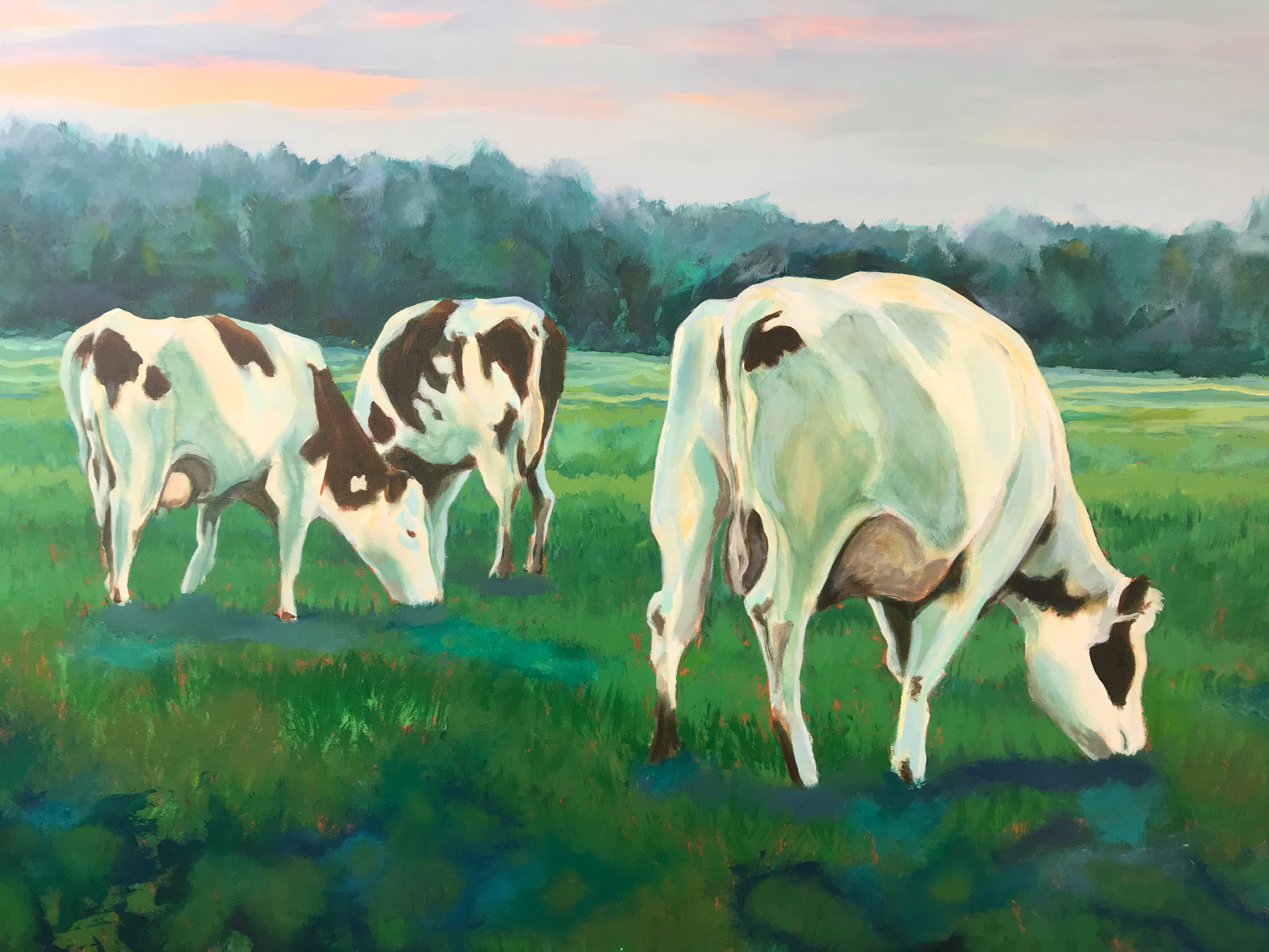 Schilderij Landschap Groen Koe Acrylverf Koeien Weiland