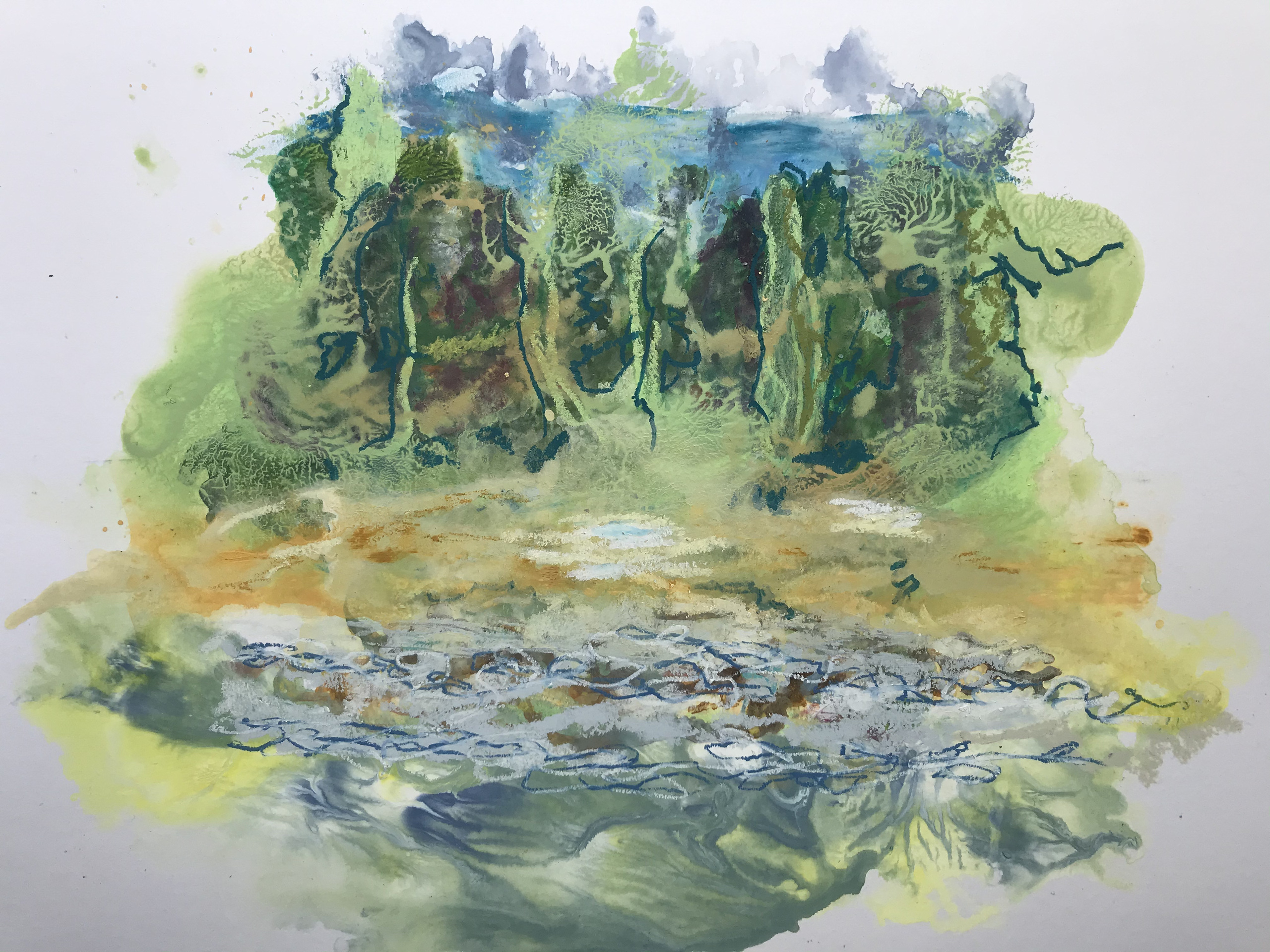 Abstract Landschap Expressief Groen Natuur Oliepastel Mixedmedia