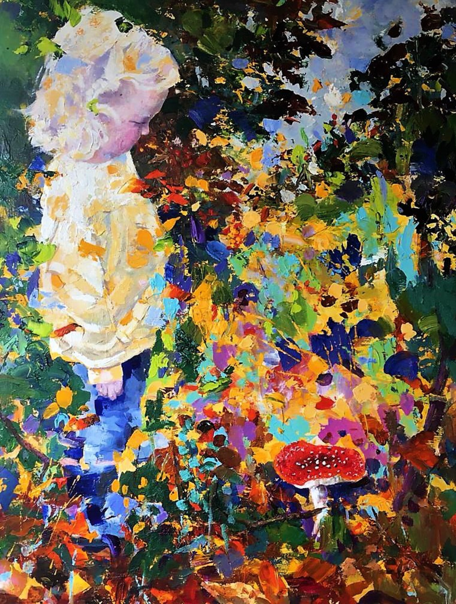 Een meisje en een paddestoel ... één met de natuur