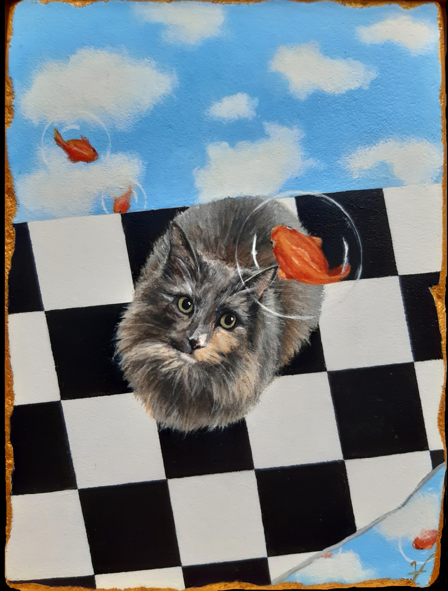 Wolken Art Painting Mini Clouds Poes Hemel Heaven Vissen Cat Fish Fine
