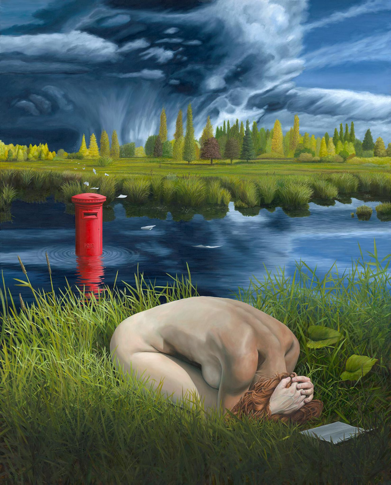 Landschap Wolken Groen Vrouw Naakt Water Magisch Gras Realisme Onweer