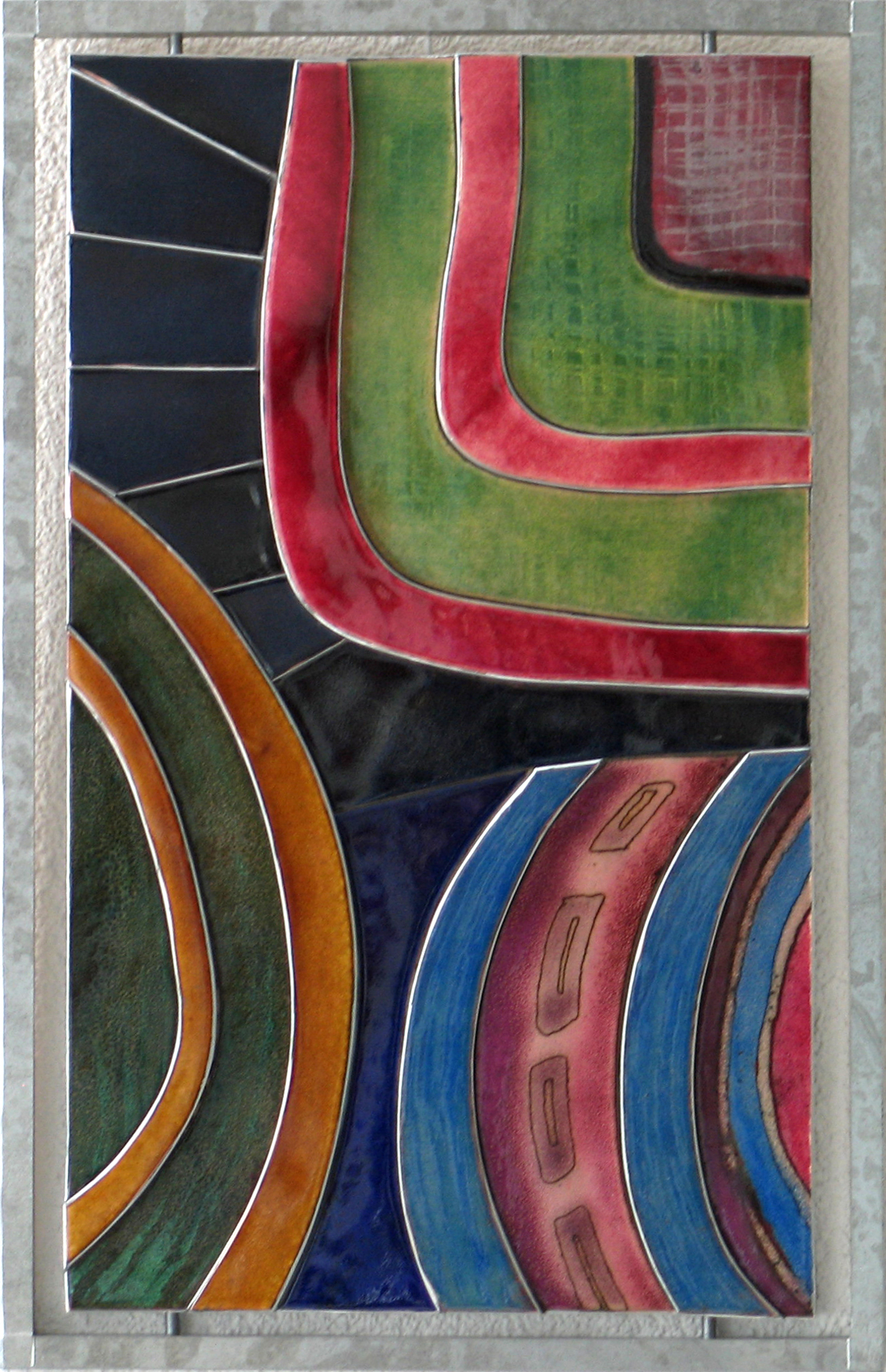 Ik ben emailleur en maak wandpanelen en reliëfs. Vaak verwerk ik er ook gefused- of brokken glas in. De zijkanten en holtes van de reliëfs werk ik af met verouderd zink.