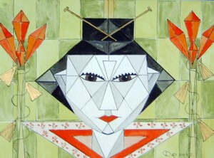 Geisha in lijnen en vakken Techniek Aquarel guache Achter passe partout en in lijst Het gaat hier om 2 schilderijen van een Geisha en een Samurai