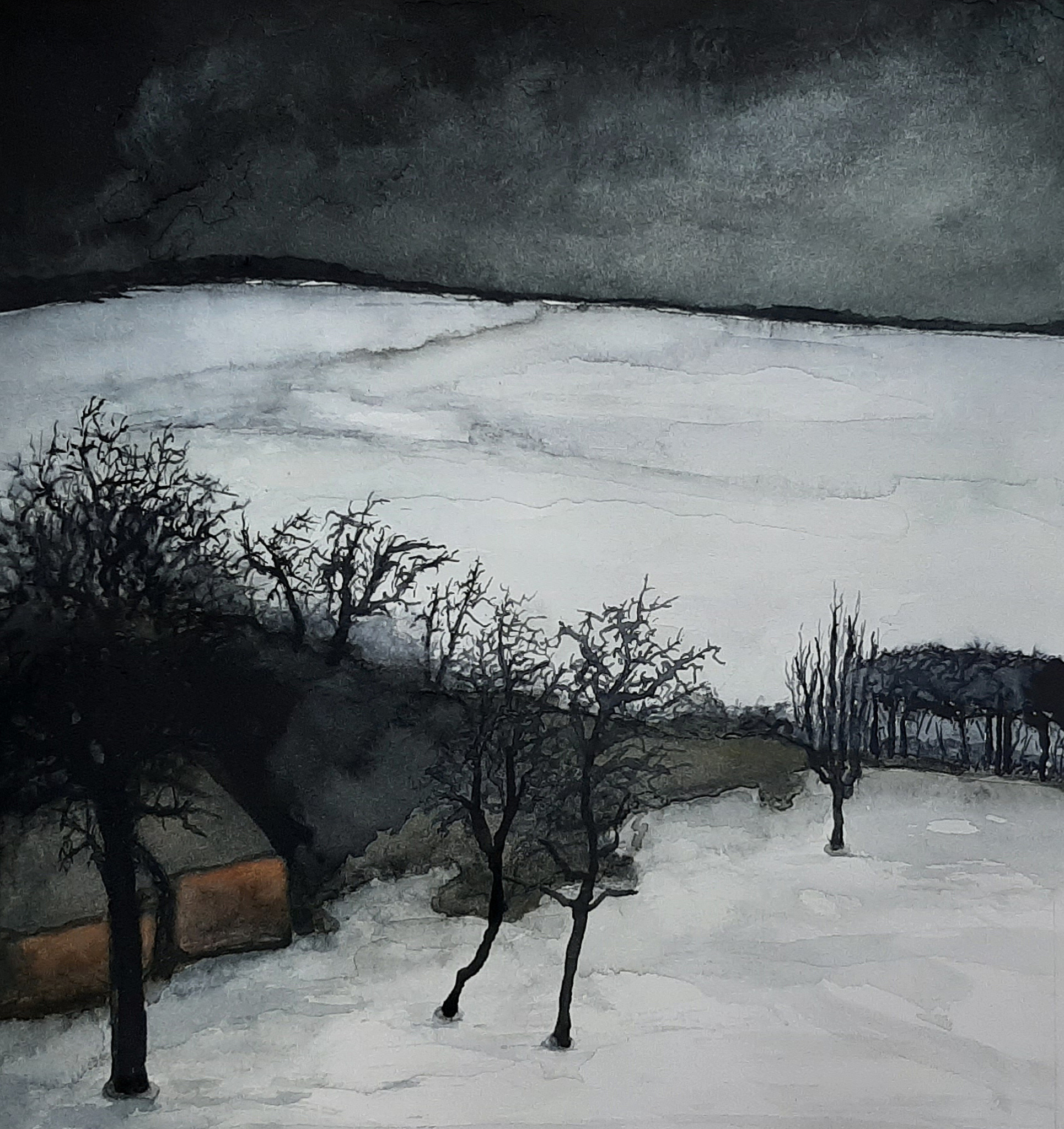 In de winter van 2020-2021 begon ik aan een aantal aquarellen in winterse sfeer. Naast de bizons in Yellowstone (een reeks van 6 aquarellen) maakte ik tegelijkertijd een aantal aquarellen in de geest van de Belgische landschapsschilder Valerius de Saedeleer (1867-1941), een van de belangrijkste vertegenwoordigers van de zogenaamde Latemse School. Ook de Saedeleer schilderde een aantal prachtige winterlandschappen. Zijn naam werd me aangeleverd door mijn neef Wim Hofman, schrijver en schilder. Het aquarel is gemaakt op 300grams Hahnemühle / Cézanne papier, afmetingen 30x30 De vermelde prijs is exclusief passe-partout en/of lijst, c.q. verzendkosten.