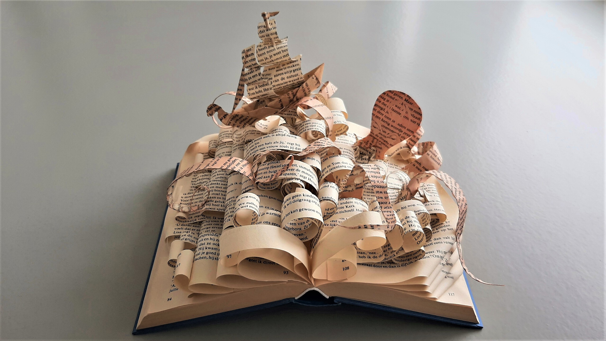 Bad octopussy, is gemaakt met oud boek en het papier ervan.