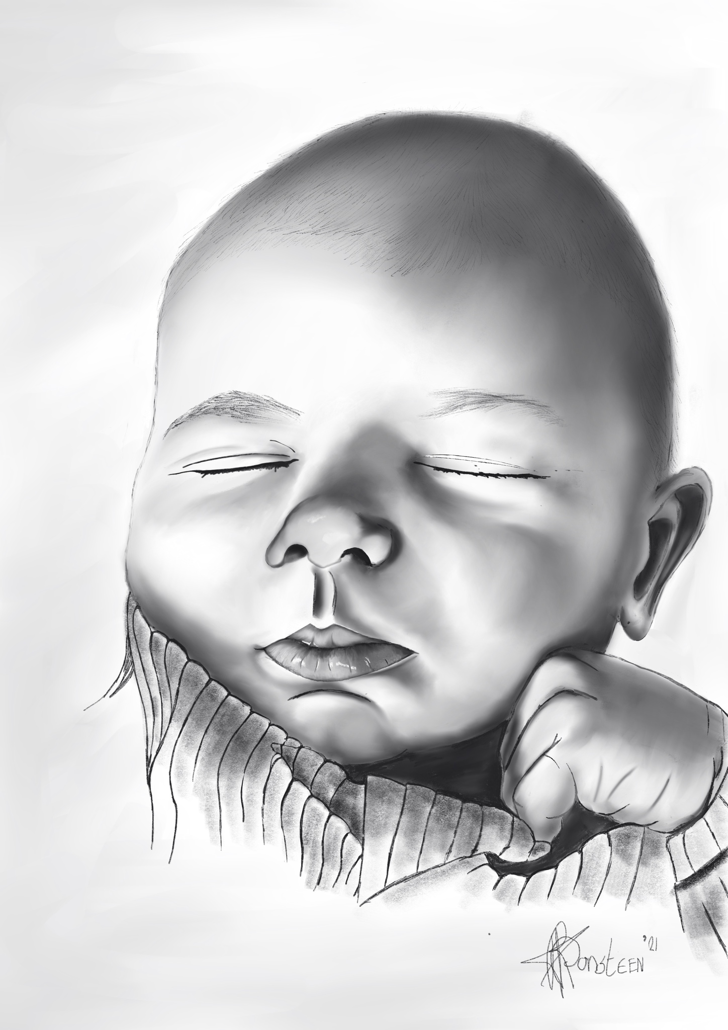 Ons pasgeboren neefje. Getekend op tekentablet