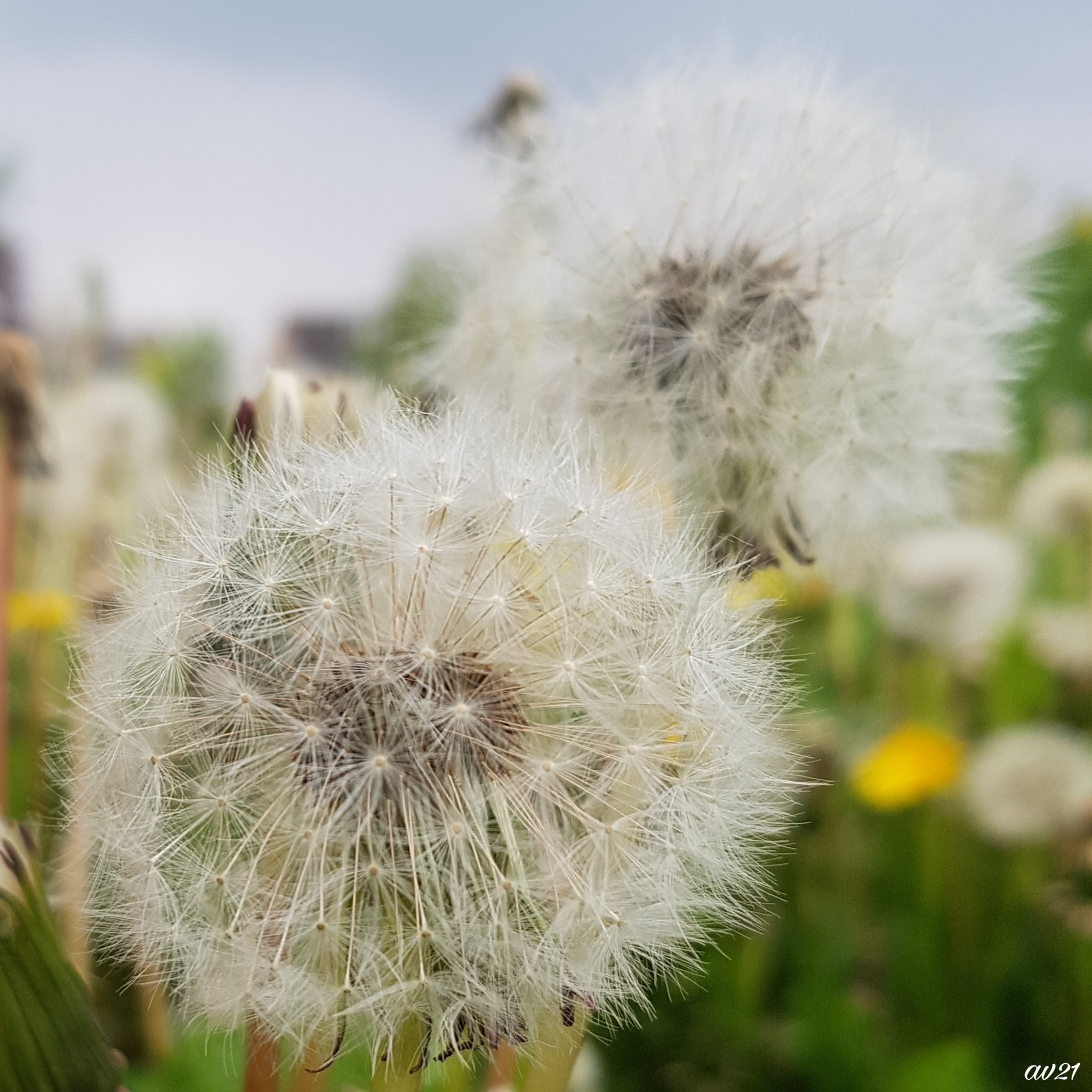 Uitgebloeide paardebloemen.