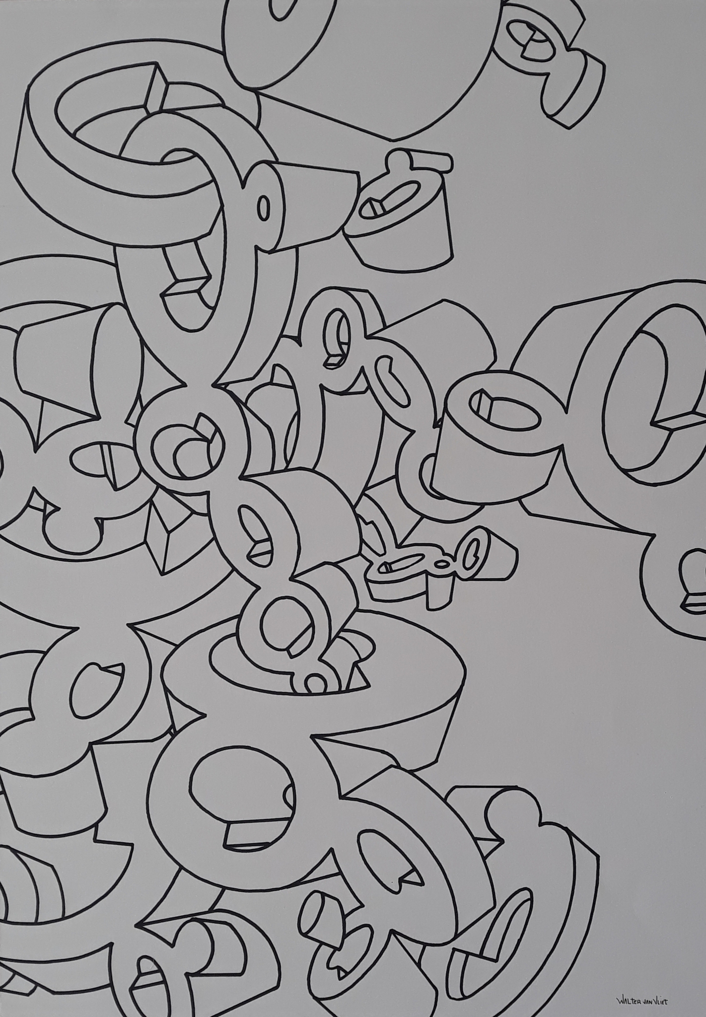 Wit Figuratief Zwart Papier Geometrisch Marker