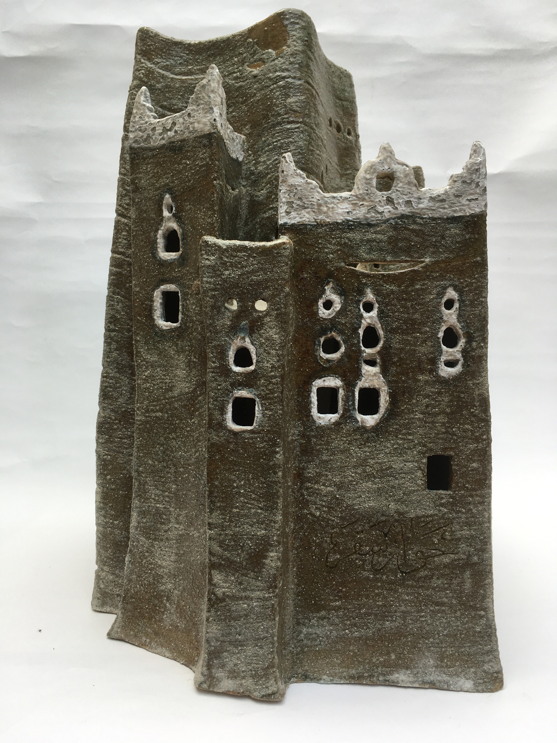 Zoektocht in keramiek: vrouwzijn in vloeiende lijnen en contouren; hoge dunne vaasvormen als weerspiegeling van een zoektocht naar identiteit...