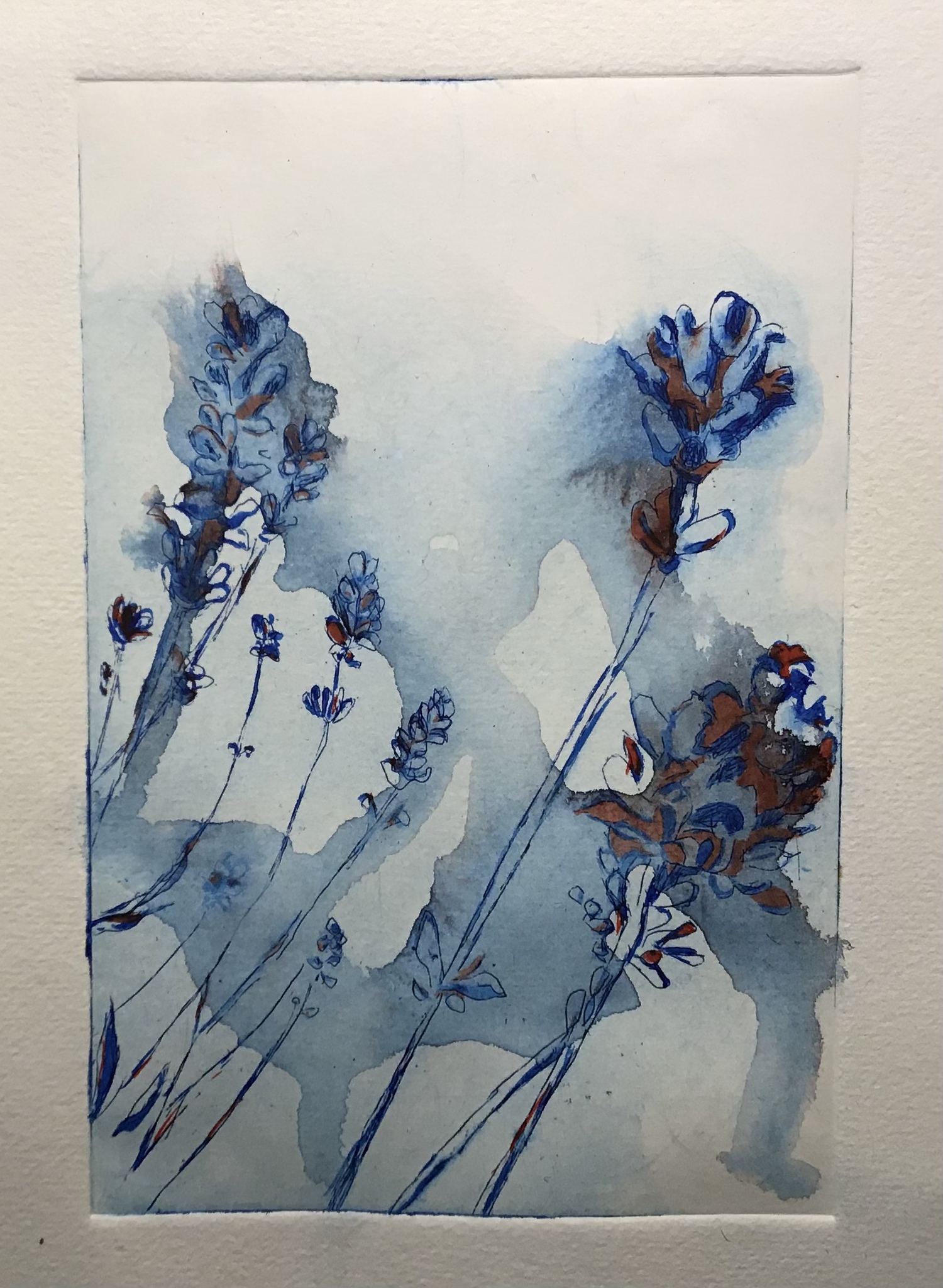 Ets, met aquarelverf gewassen