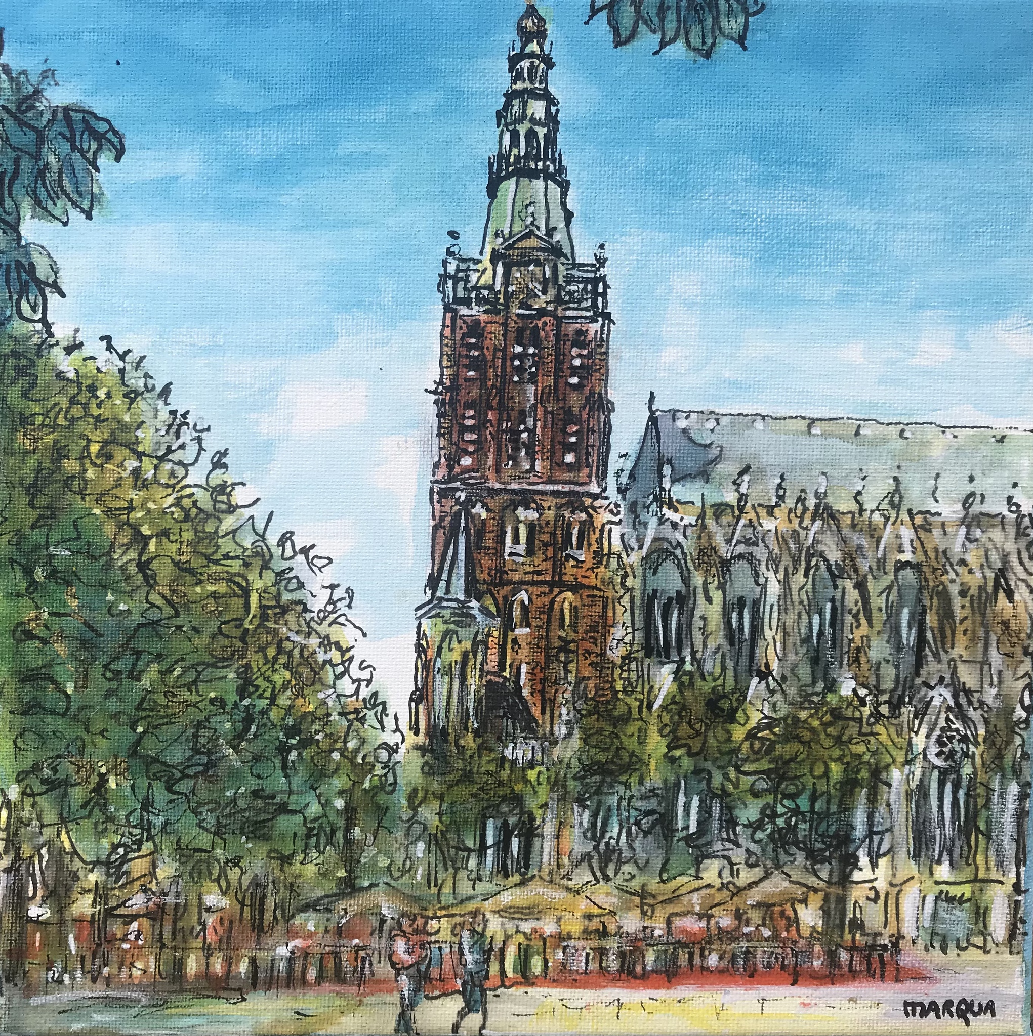 Sint Jan aan de Parade, inkt op doek 20x20 cm.