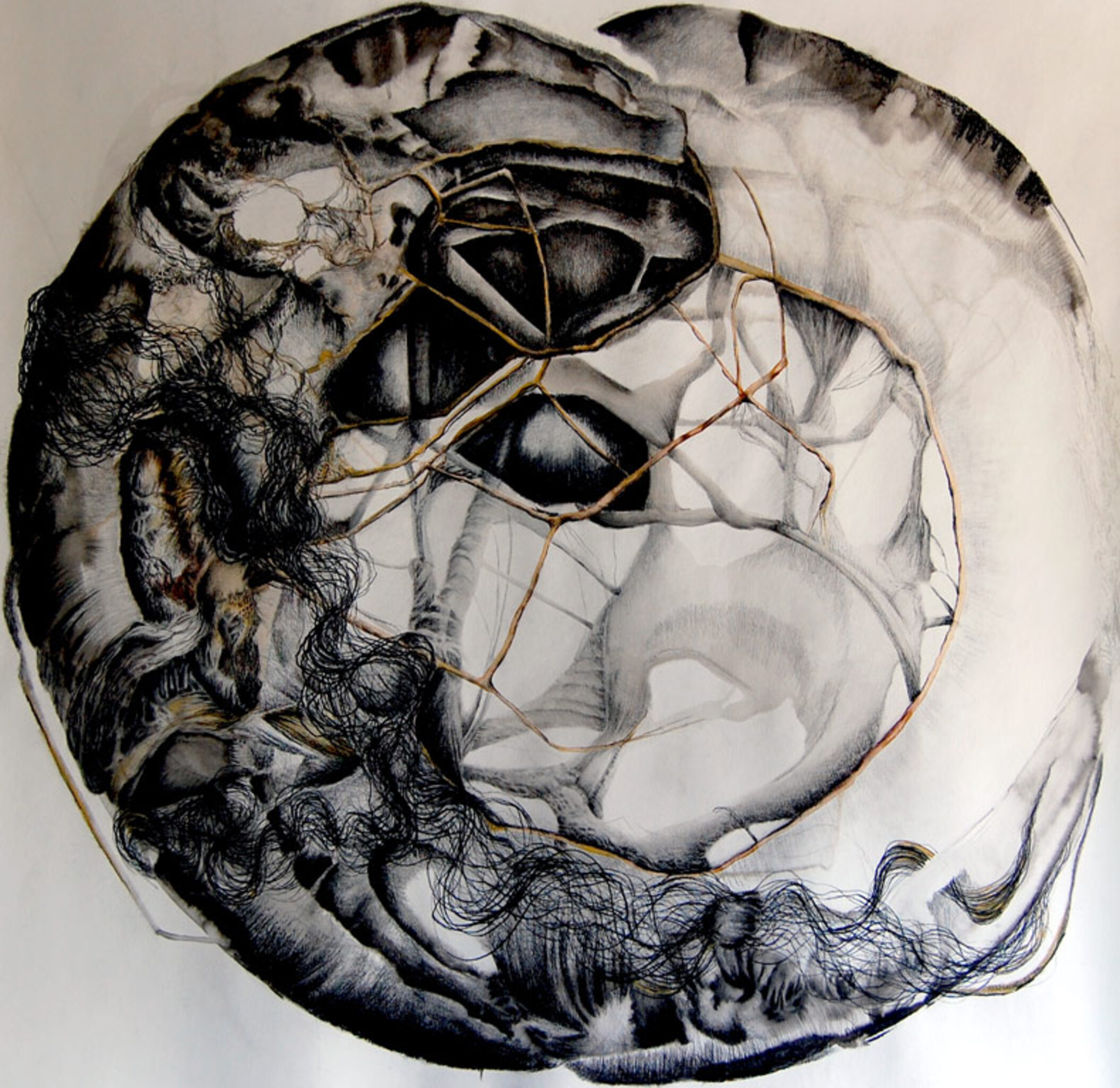 Marian Reintjes (1948) werkt in uiteenlopende technieken maar gebruikt steeds hetzelfde uitgangspunt: zonder plan begint zij met een materiaal en start daarmee een proces dat zich steeds meer ontvouwt