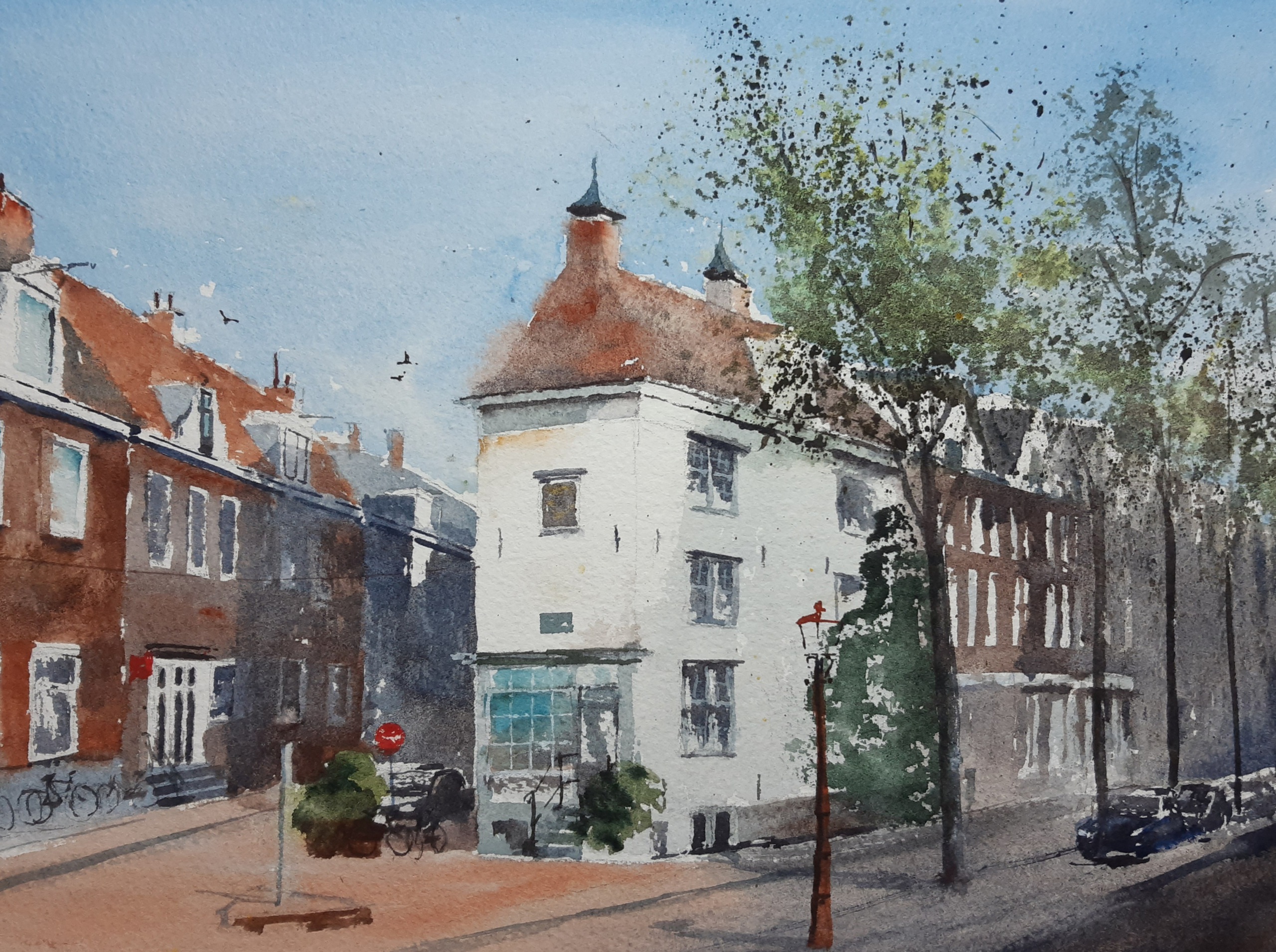 Amsterdam Weteringbuurt Wittehuis Aquarel Stadsgezicht