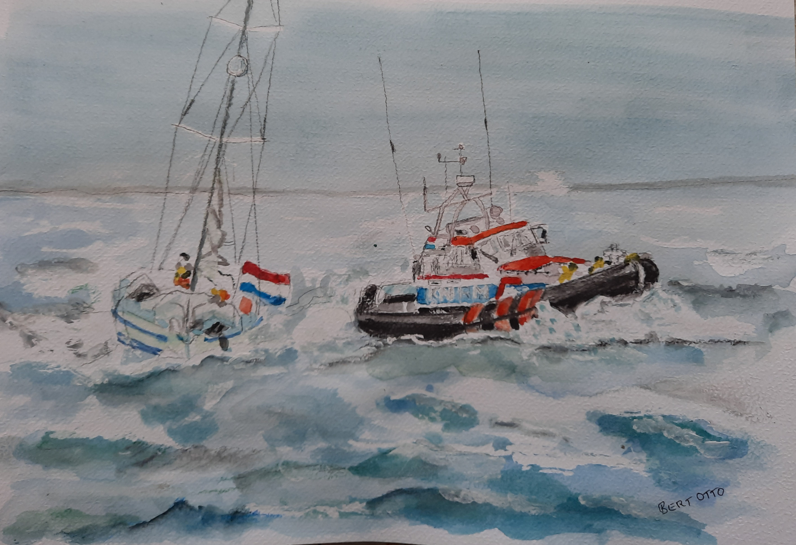 Impressie redding op zee door de KNRM.