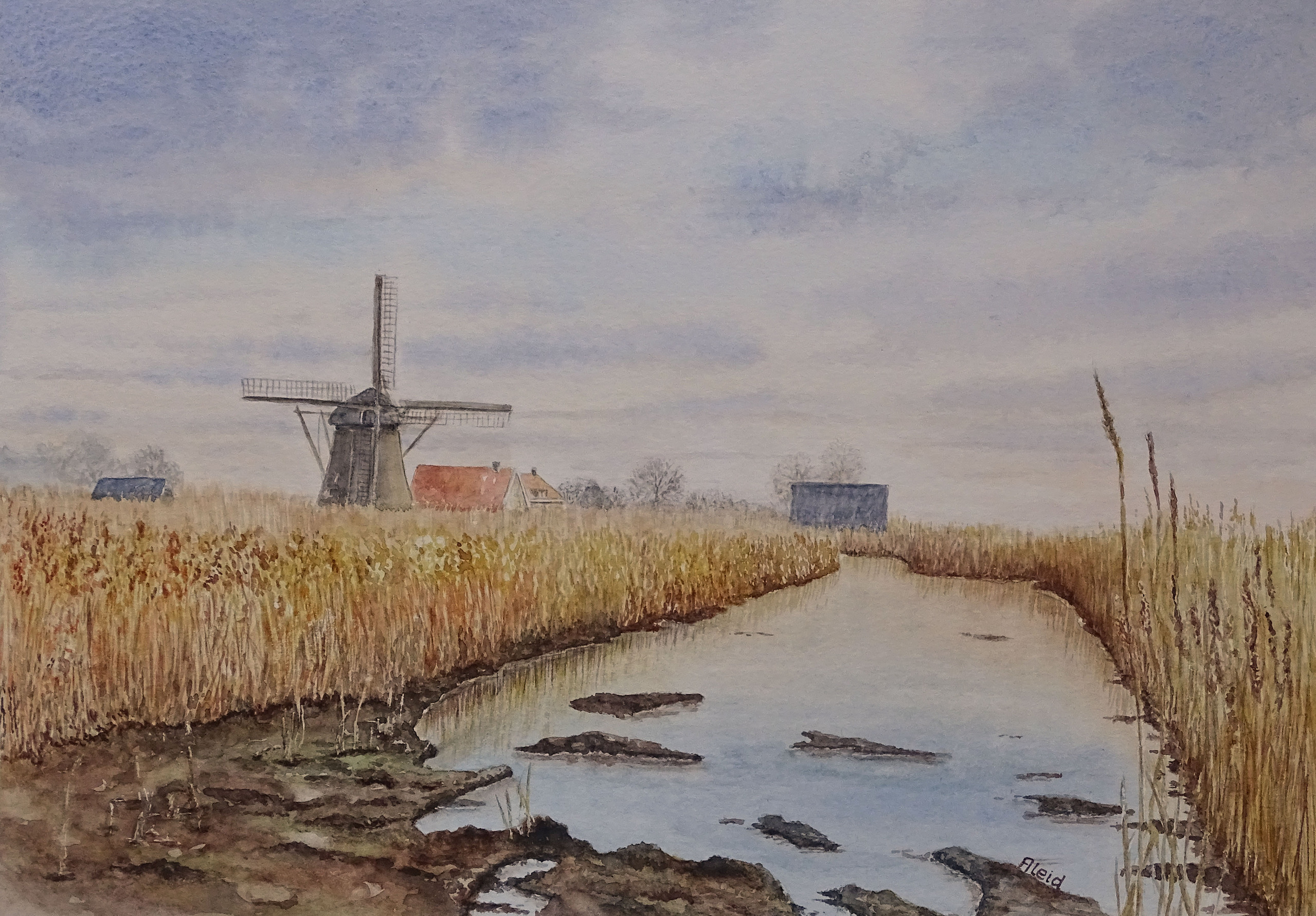 Aquarel Winter Molen Otter Noord-holland Oterleek