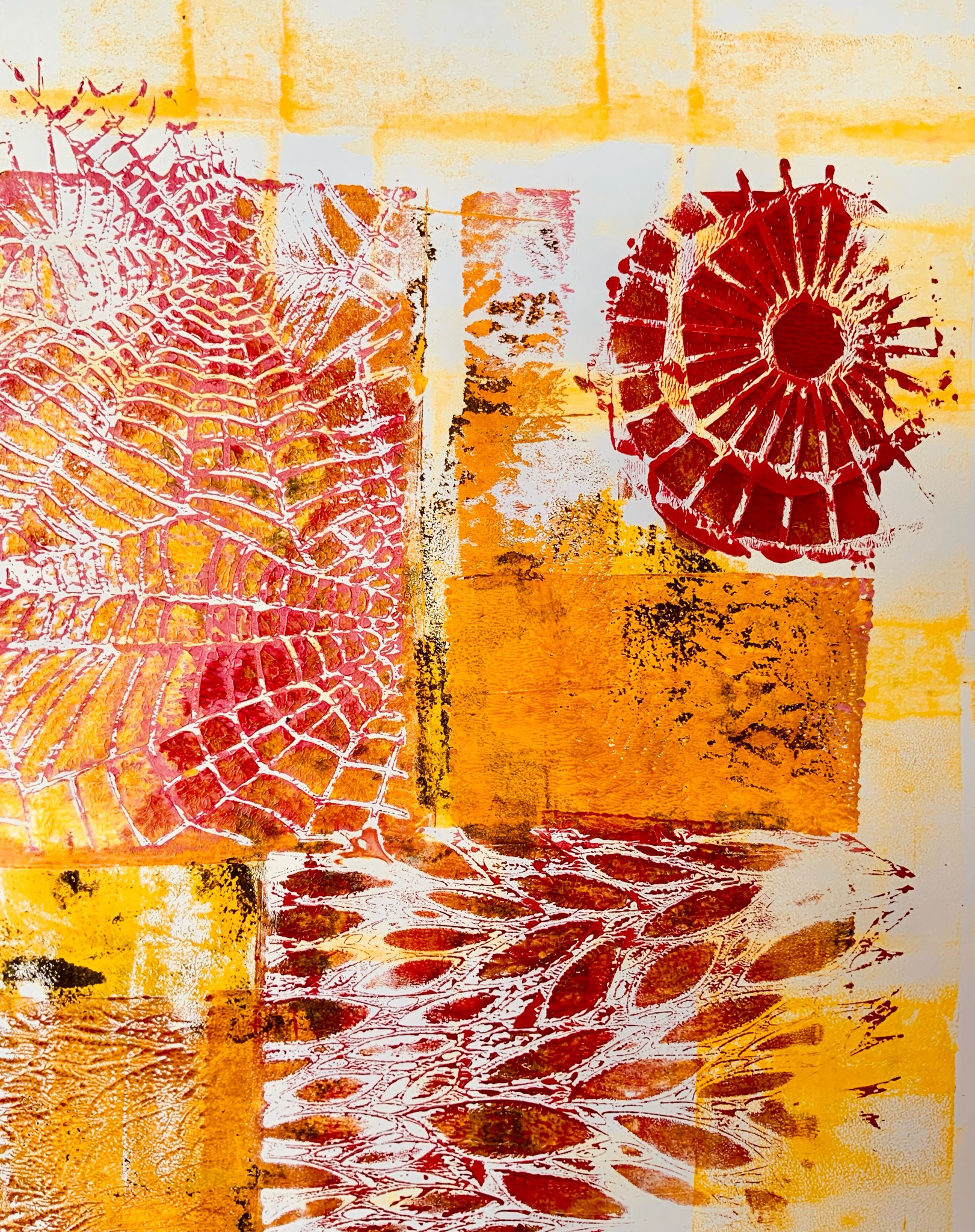 Abstract Rood Oranje Geel Klein Werk Gedrukt