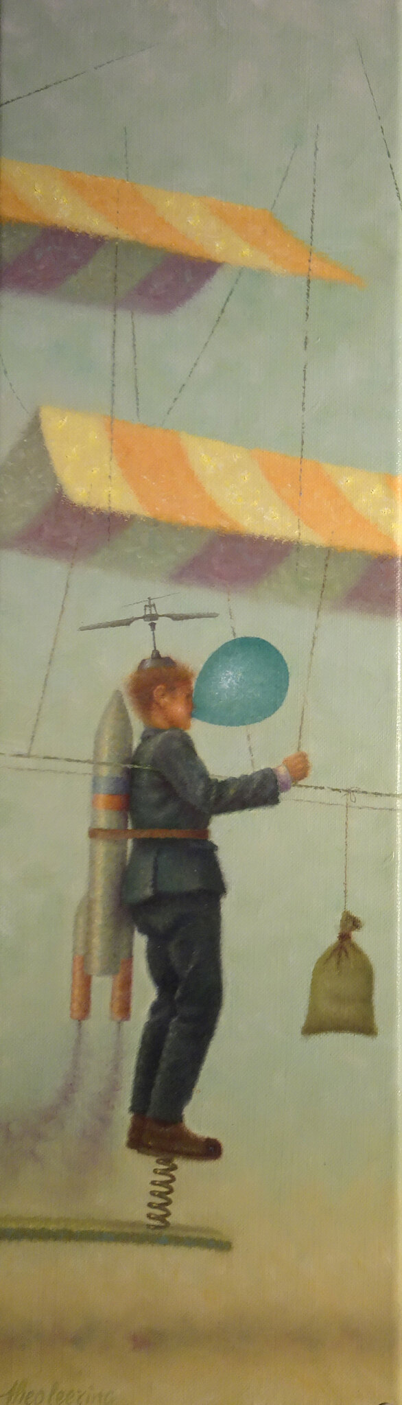 Na het voltooien van een grafische opleiding en jarenlange zelfstudie is Theo Leering sinds enige tijd full time werkzaam als beeldend kunstenaar. Zijn stijl valt moeilijk in één hokje te plaatsen maar is altijd figuratief. Het beweegt tussen realistisch en absurdistisch en is vaak melancholisch van toon. Achter deze melancholie schuilt te allen tijde een sprankje hoop. De thema’s lopen sterk uiteen al speelt muziek in veel van zijn werk een belangrijke rol. In principe kan alles wat op zijn netvlies verschijnt, hoe klein of ogenschijnlijk nutteloos ook, dienen als idee voor een schilderij. In opdracht maakt Theo portretten en muurschilderingen. Daarnaast geeft hij een aantal dagdelen per week les in tekenen en schilderen.