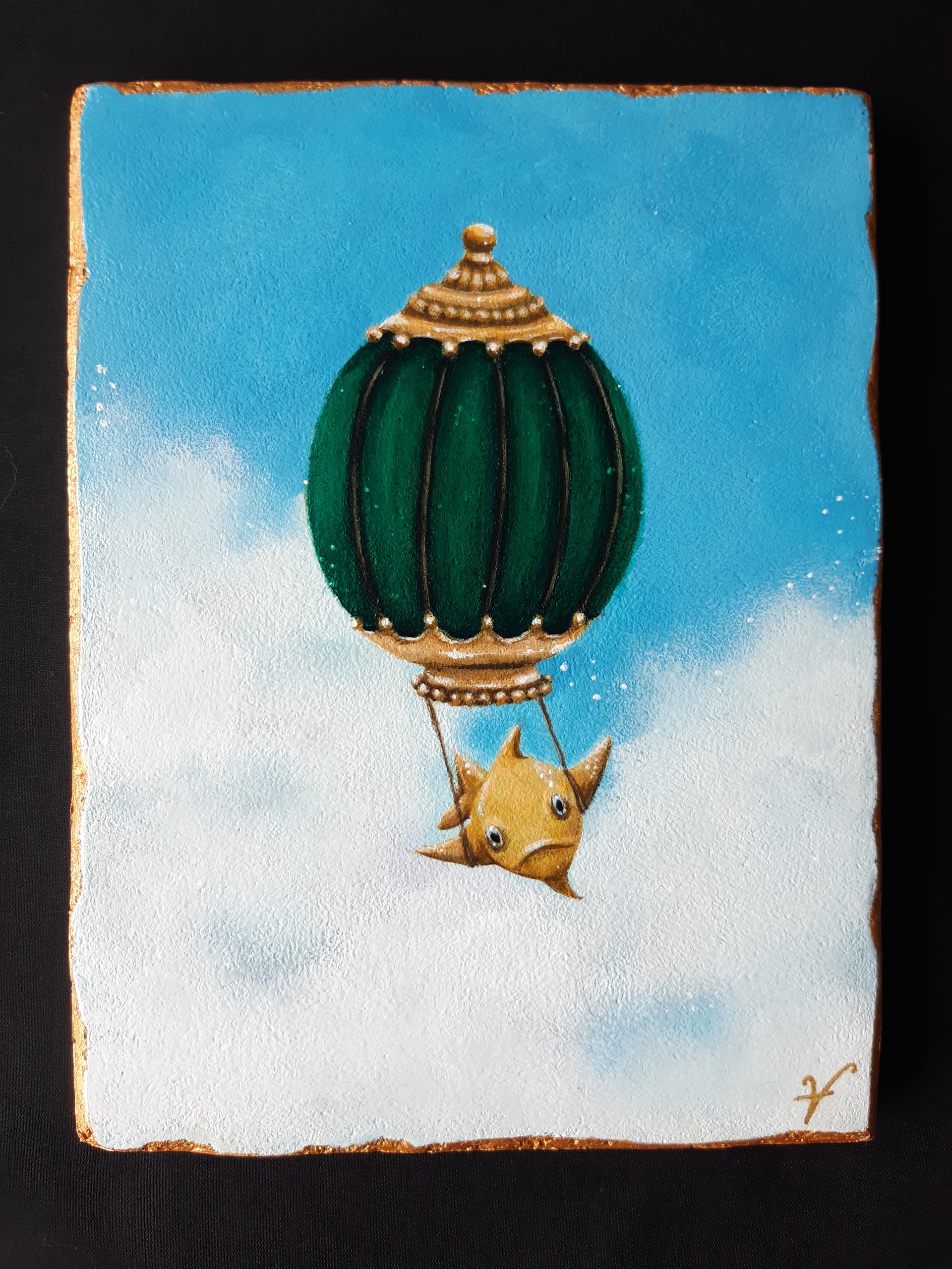 Schilderij Wolken Ballon Vis Paneel Mini Clouds Fish Wooden Tegeltje Balloon Tile