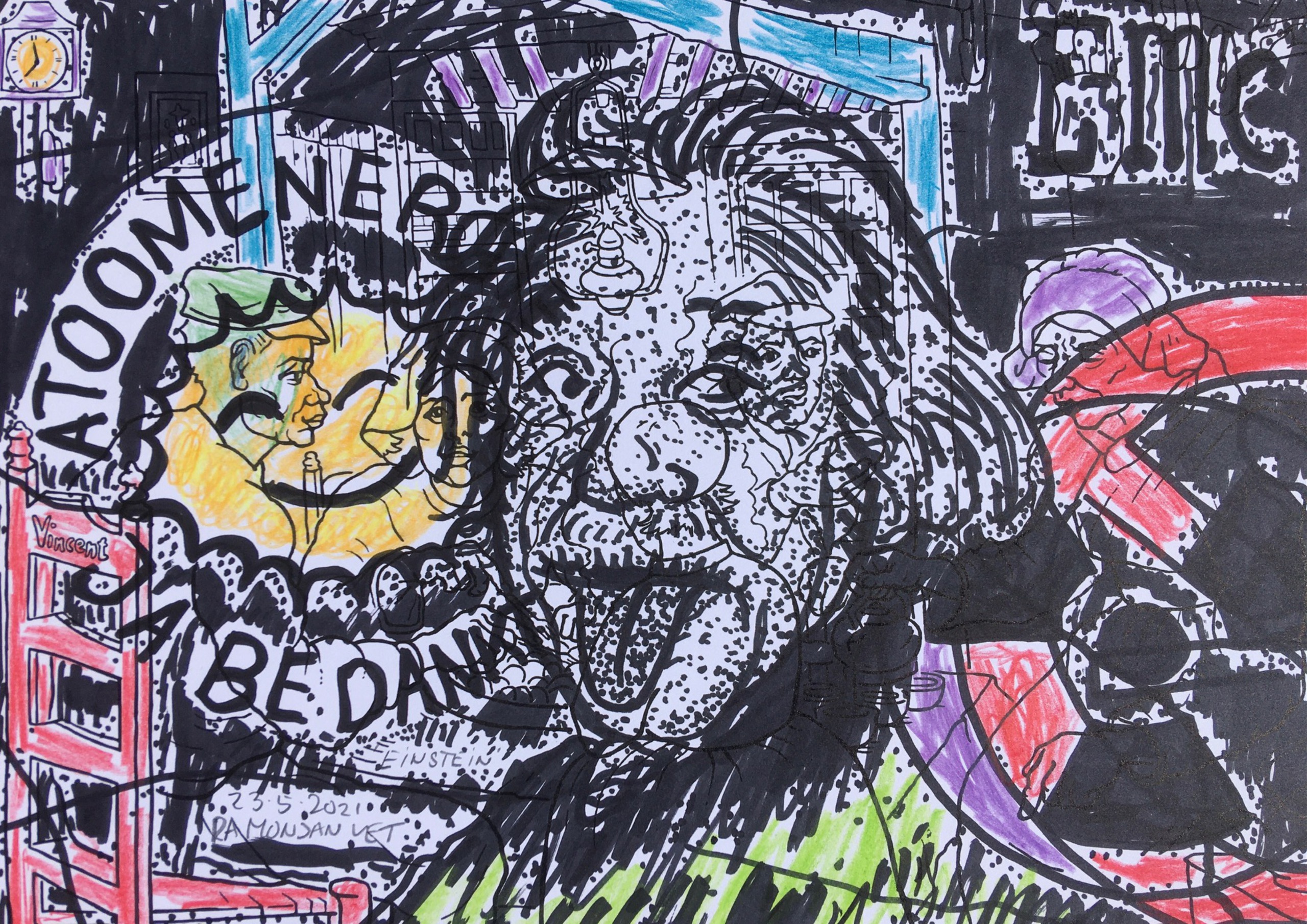 Einstein Kernenergie Kunst Art Tekening Tekenkunst Vet