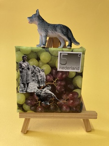 Col -la-ge: samengepakt geheel. Ik verzamel spullen en afbeeldingen. Daarna stel ik ze samen om een decoratief kunstobject te vormen. Humor, verwondering, verbazing, verhalend en stuk voor stuk uniek.