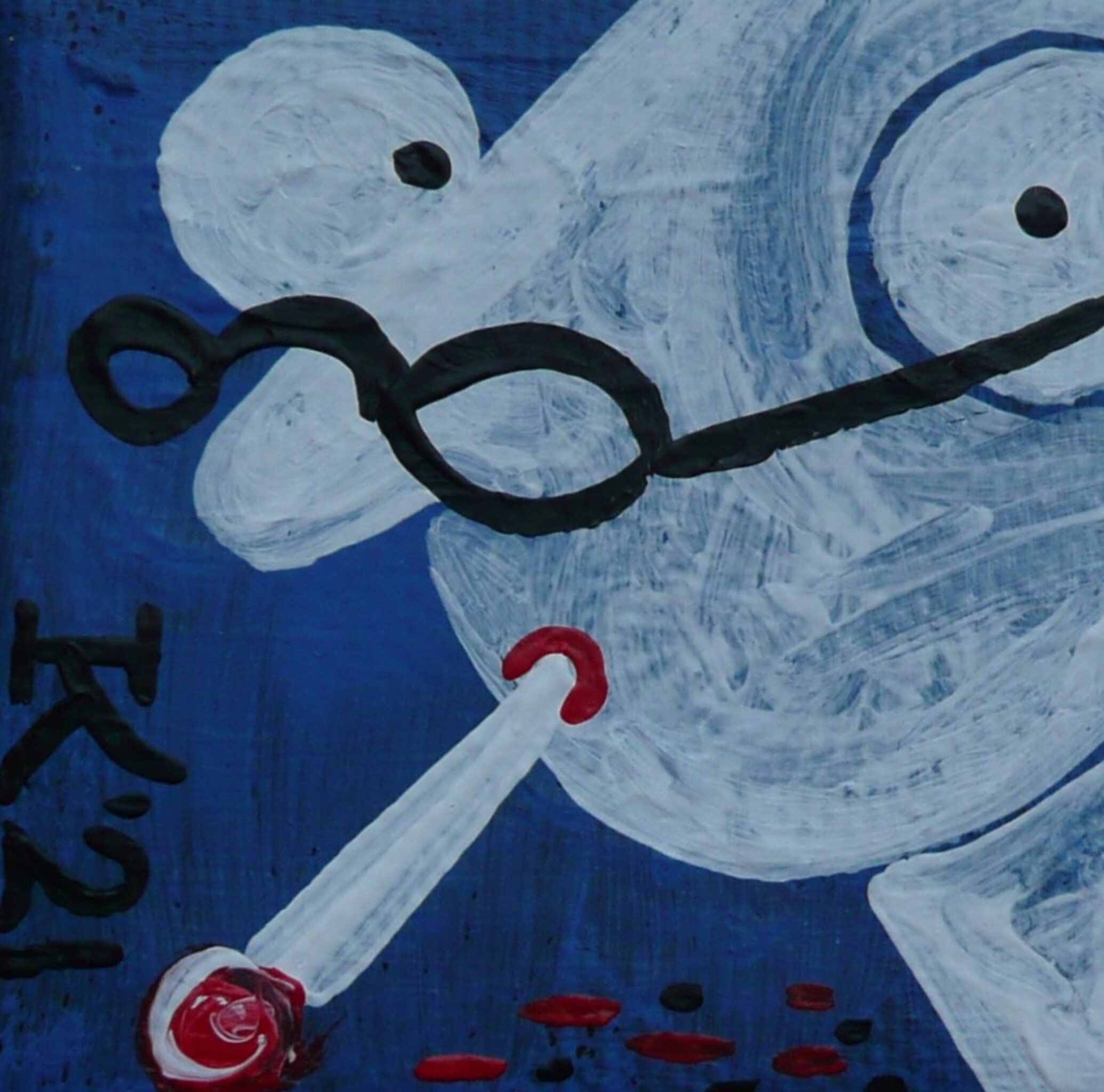 Acrylverf op katoen, 5 bij 5 cm, Pictoright 2021. De prijs is inclusief een leuke verpakking en verzendkosten binnen Nederland. Als je je abonneert op mijn Nieuwsbrief - zie linksonder bij ‘Contact’ - krijg je 10 % korting bij aanschaf van dit werk.