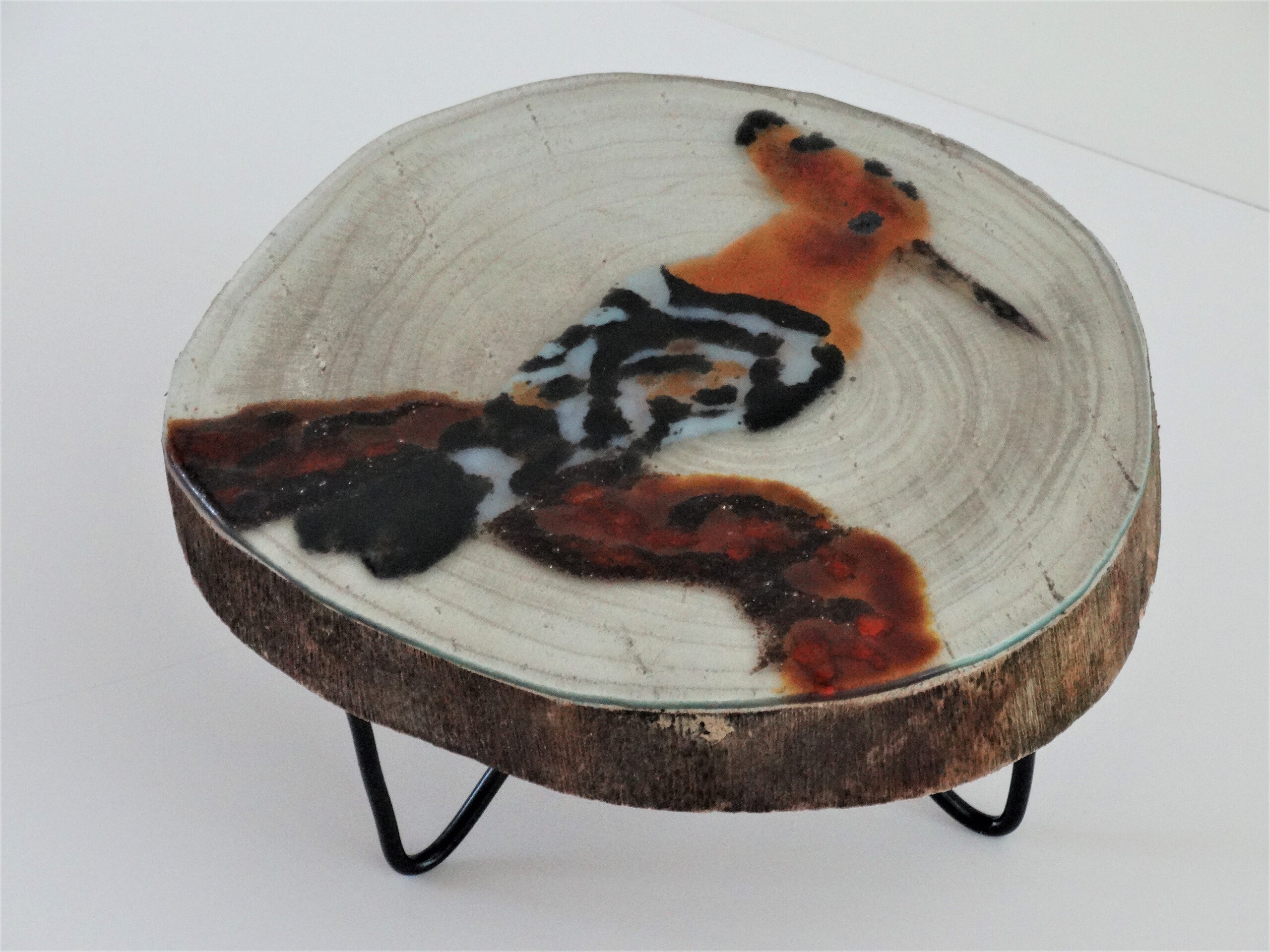 Zwart Hout Bruin Glas Glasfusing Glasobject Boomstam Hop Tafeltje Bijzettafeltje Glasfusen