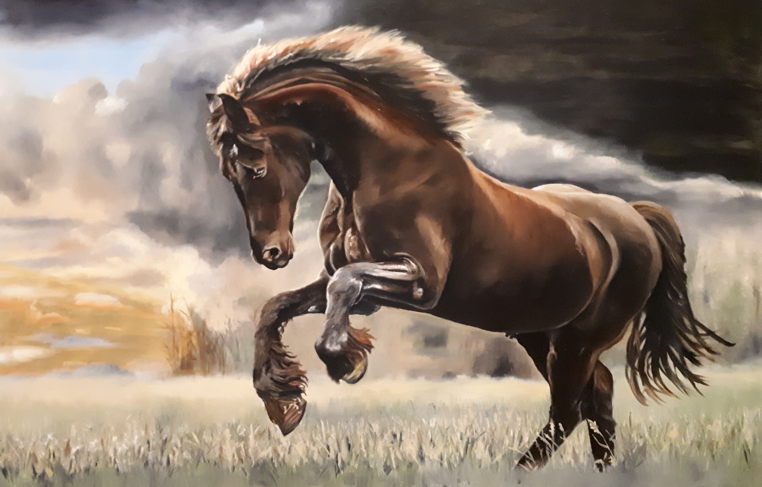 Paard, olieverf op doek, met bladgoud.