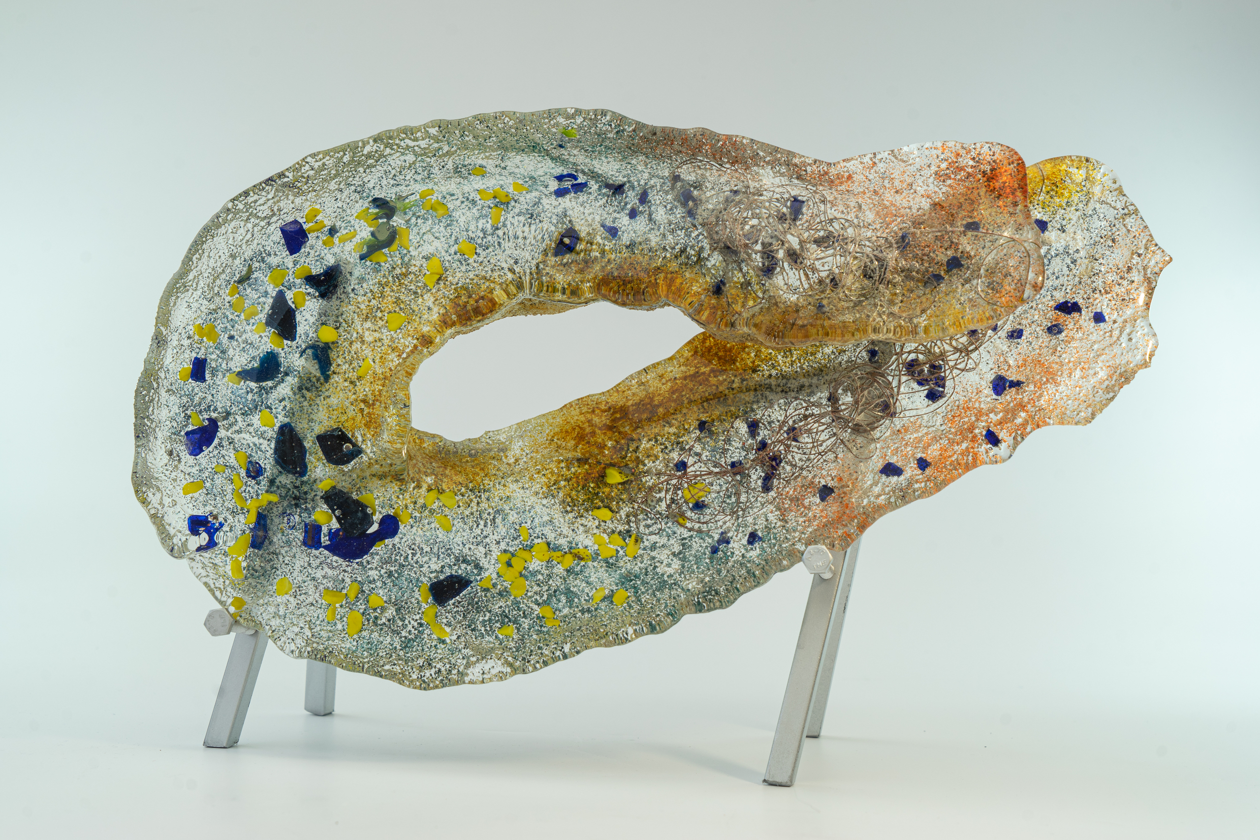 Glas biedt veel mogelijkheden om mee te werken. De natuur, aarde, wind en water zijn inspiratiebronnen. De gegoten en de gefusede glas objecten zijn speels en kleurrijk en laten de fantasie werken.