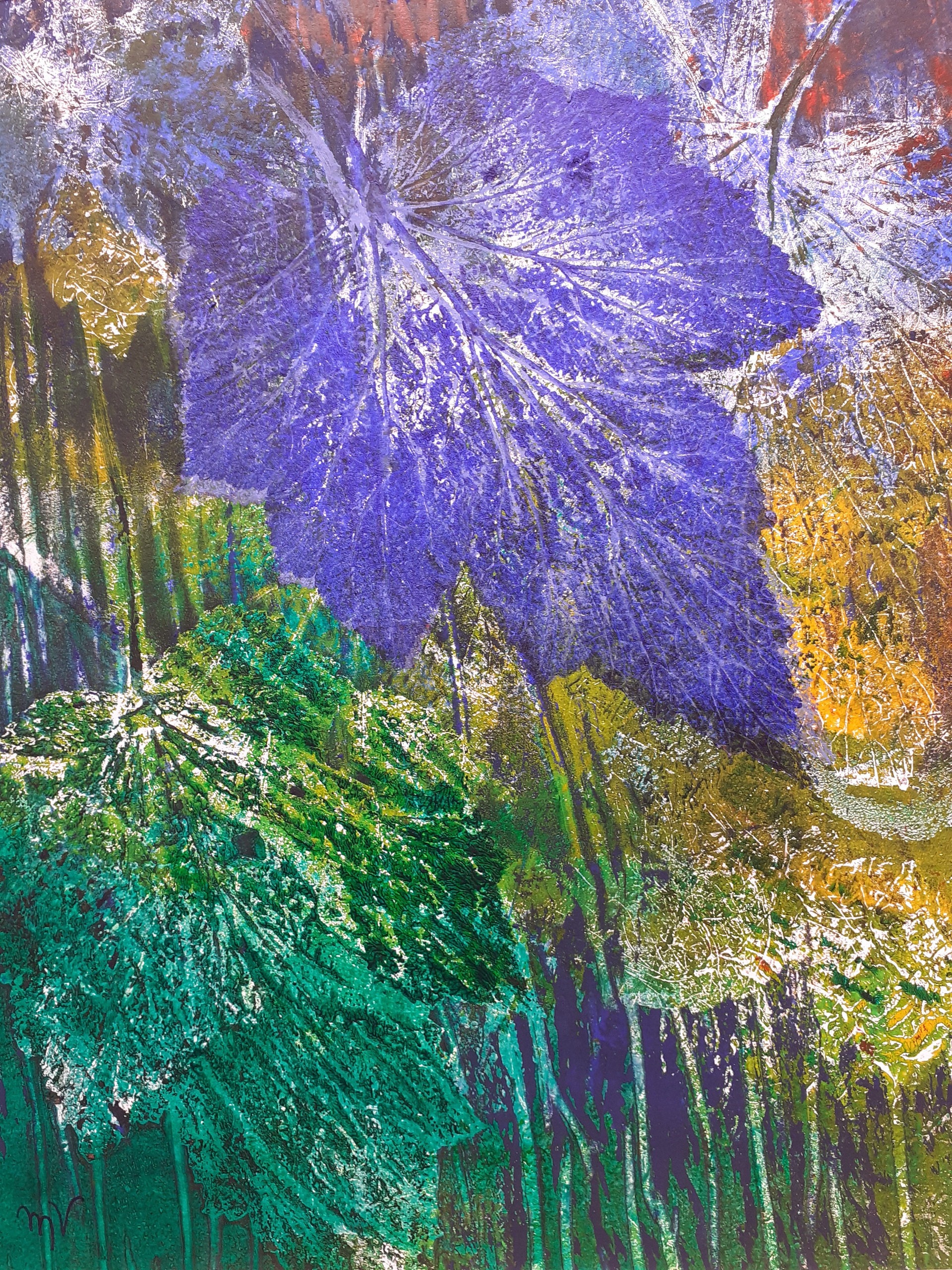 Mijn onderwerpen vind ik zowel in mijzelf als in mijn omgeving. Ik begin te werken vanuit de waarneming en laat deze dan langzamerhand steeds meer los.