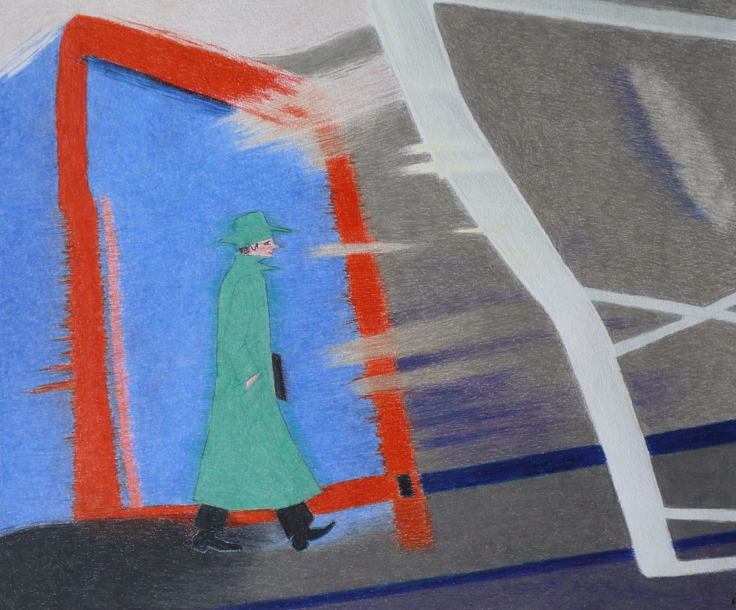 abstracte kleurpotloodtekening met figuur