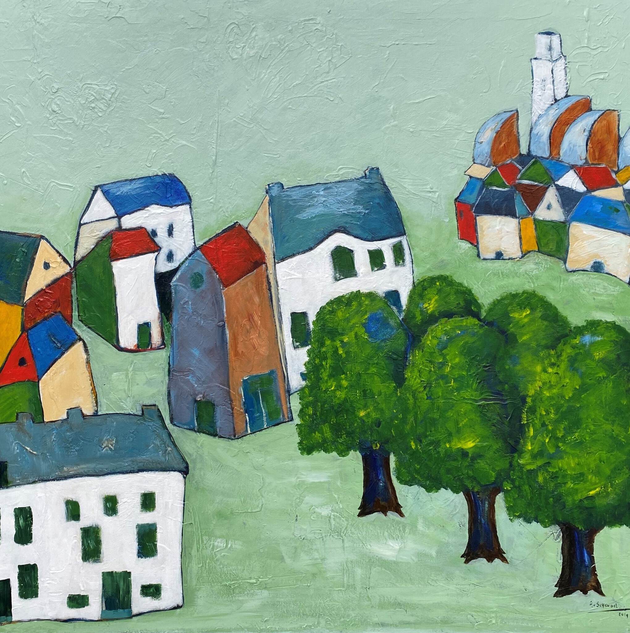 Wit Geel Blauw Groen Bruin Blue Bomen Green White Brown Kerk Lijnen Huizen Ring Church Markt Toren Top Bosch Misterie Sint Den Houses Trees Tower