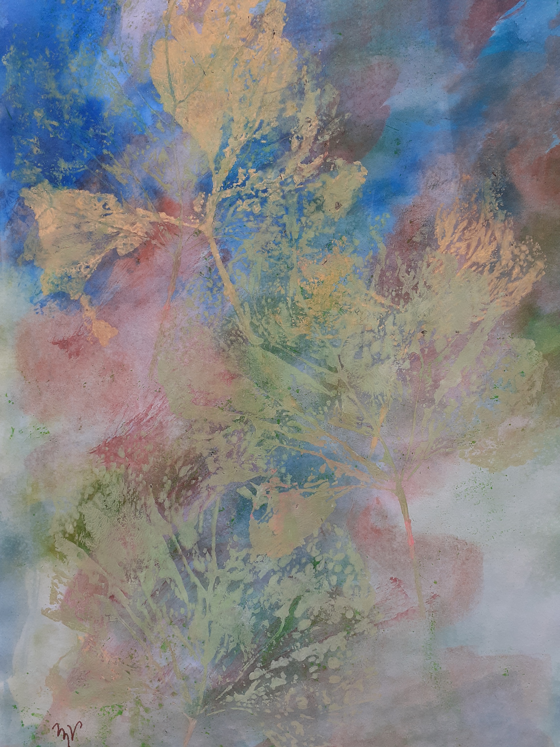 Mijn onderwerpen vind ik zowel in mijzelf als in mijn omgeving. Ik begin te werken vanuit de waarneming en laat deze dan langzamerhand steeds meer los.