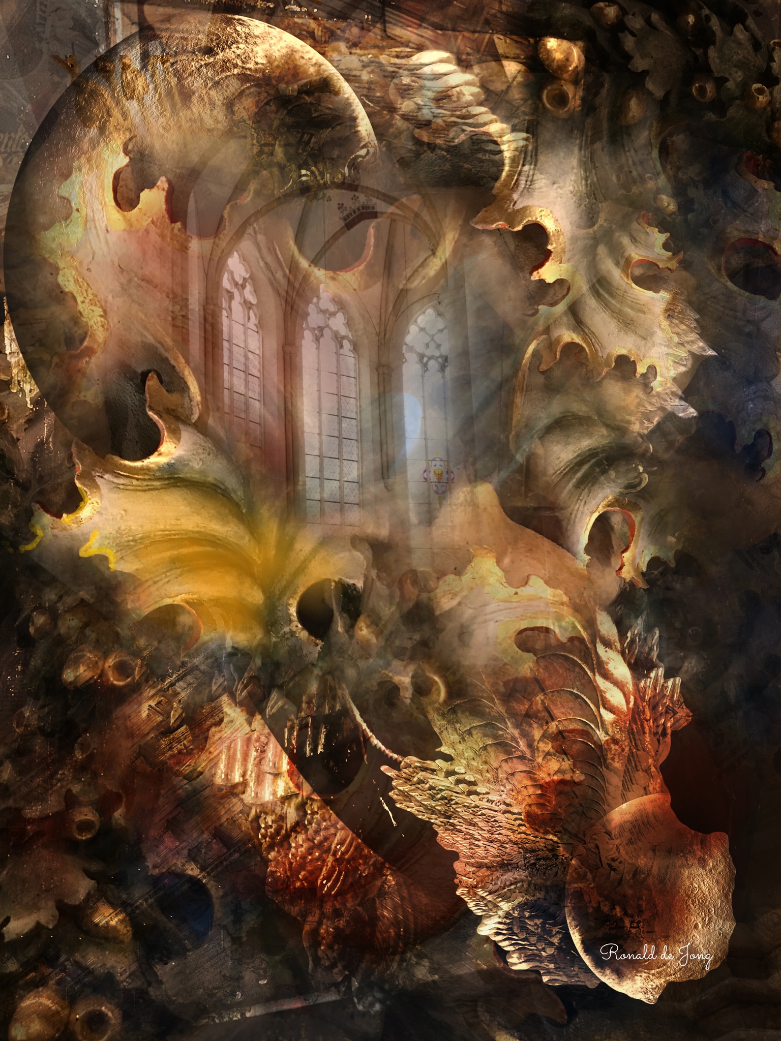Ronald de Jong ( beeldend kunstenaar - toonkunstenaar) is autodidact en maakt schilderijen in een figuratief-abstrakte schilderstijl- waarbij hij gebruikt maakt van verschillende technieken zoals olieverf- pastel en acryl. Tevens schuwt hij het collage element niet en expirimenteert hij graag met allerhande materialen zoals b.v boomschors ,zand en papier.Tevens bewerkt en beschildert hij houtsculpturen in expressieve vormen en kleuren. Daarnaast is hij aktief als Digital Art kunstenaar
