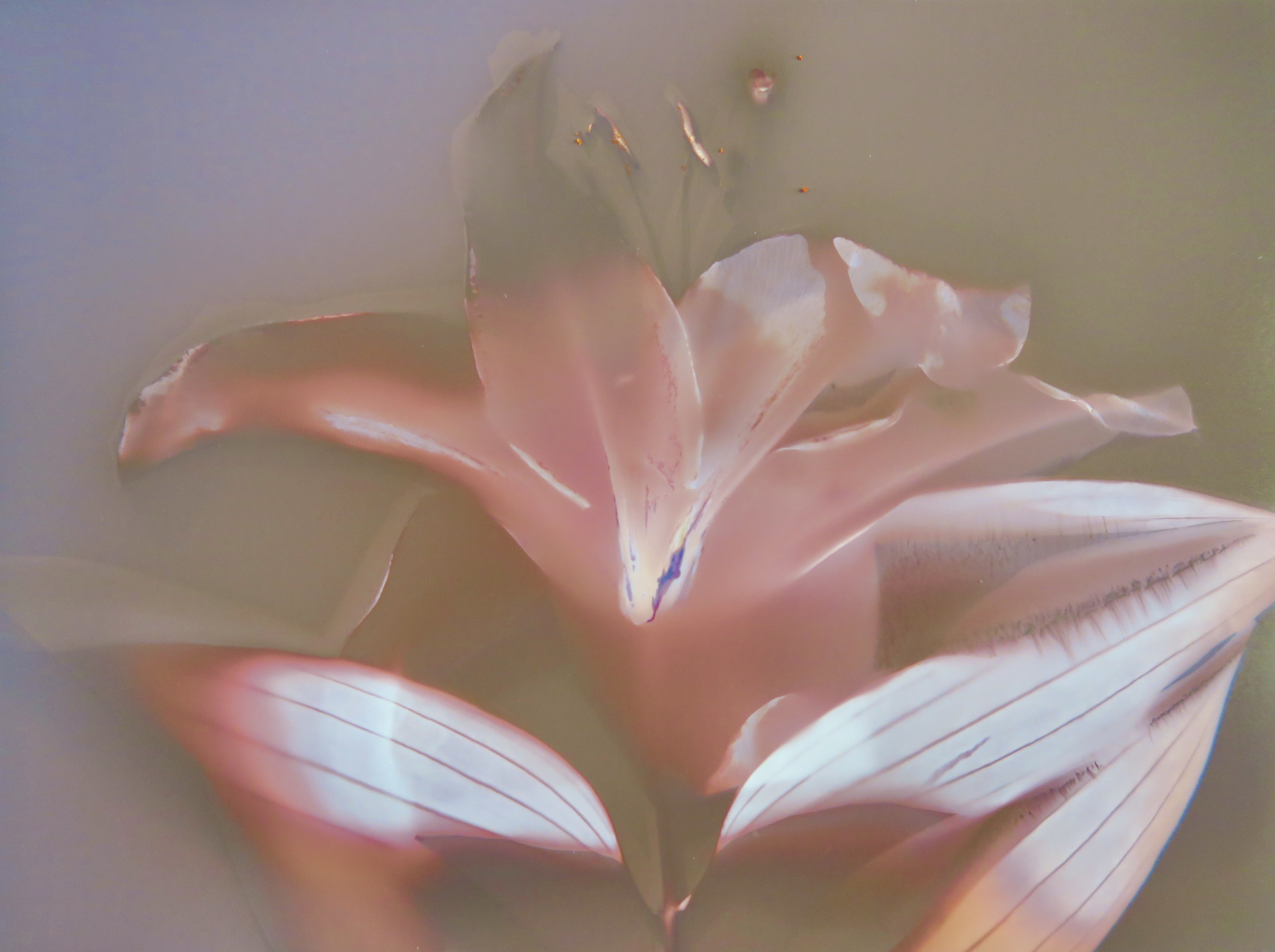 Lelie Bloem Natuur Foto Fotogram Alternatieve Fotografie Bruin Blauw Wit