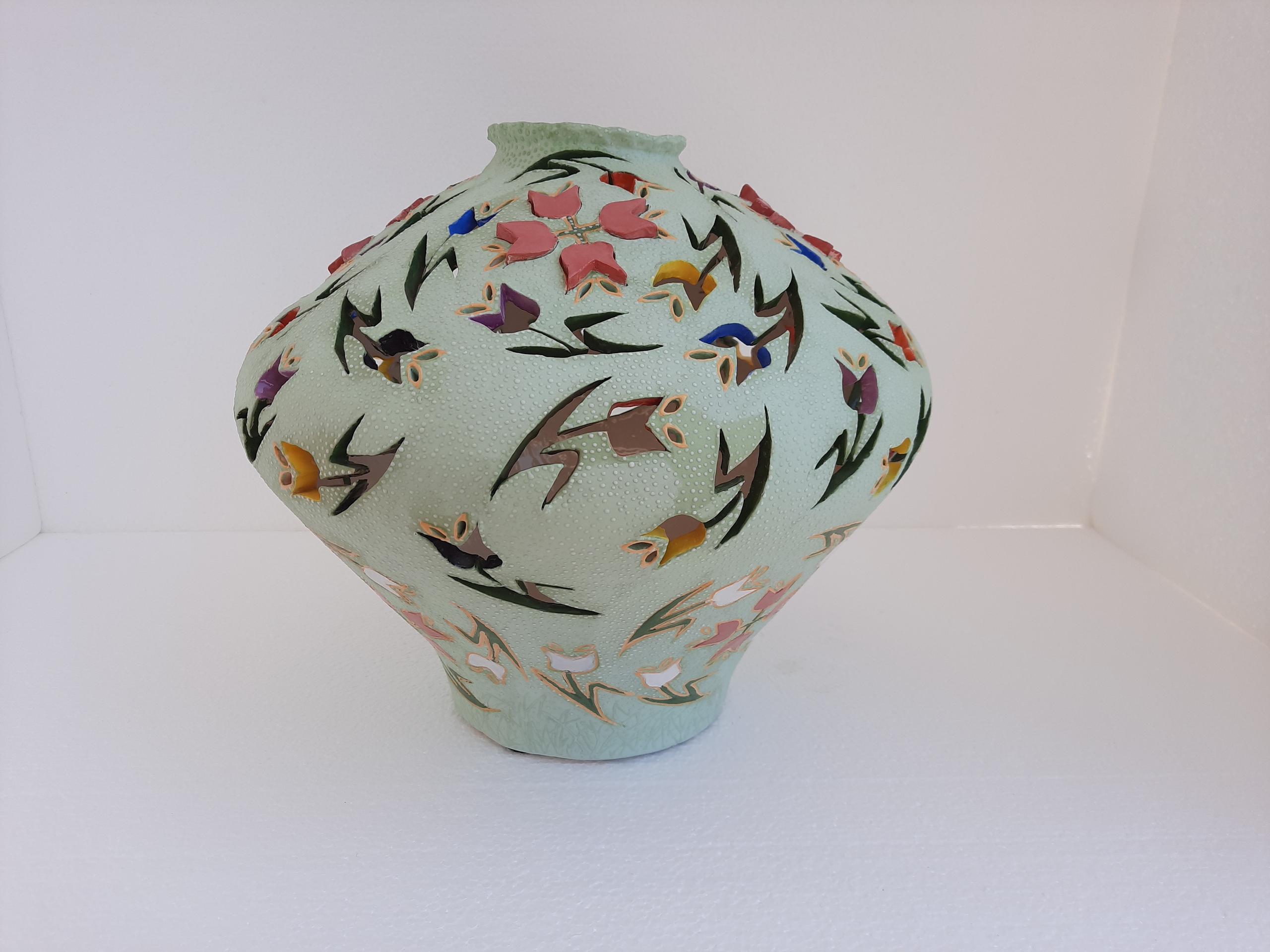 Ik ben In 2008 gestart met een keramiekcursus op Curaçao. Binnen 3 jaar had ik mijn eigen stijl ontwikkeld. In 2015 heb ik de draad in Nederland weer opgepikt. Mijn inspiratiebron stamt af uit mijn jeugd; we hadden veel kunst van geperforeerd houtsnijwerk in huis. Ik haal ook veel inspiratie uit de printsvan stoffen en ook van kleurencombinaties daarvan. Ik werk met vaste kleuren en vaak ook gedeeltelijk geglazuurd. Mijn werk heeft 2 functies: windlicht en kunstobject!